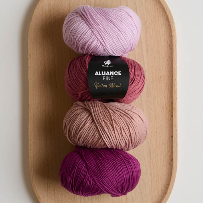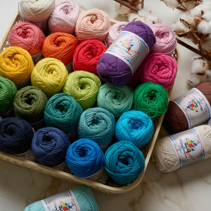 Mayflowers hjørnesten var bomuldsgarn, som i dag har fået følgeskab af en masse andre spændende og lækre garnkvaliteter, som er efterspurgte hos de garnglade.