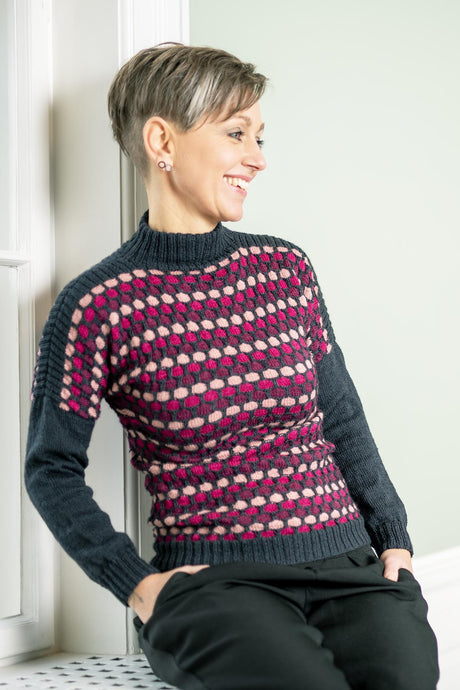 FR36 - Granny stripe sweater med rullekrave Opskrift