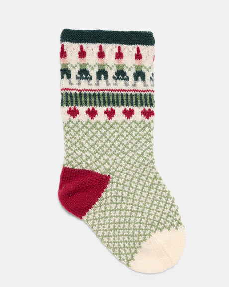 LF05 - Strikket julesok med nisseranke og grønt rudemønster