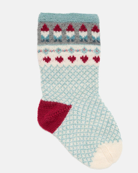 LF07 - Strikket julesok med små nisser og turkis rudemønster Opskrift