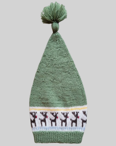 LF05 - Strikket julesok med nisseranke og grønt rudemønster Opskrift