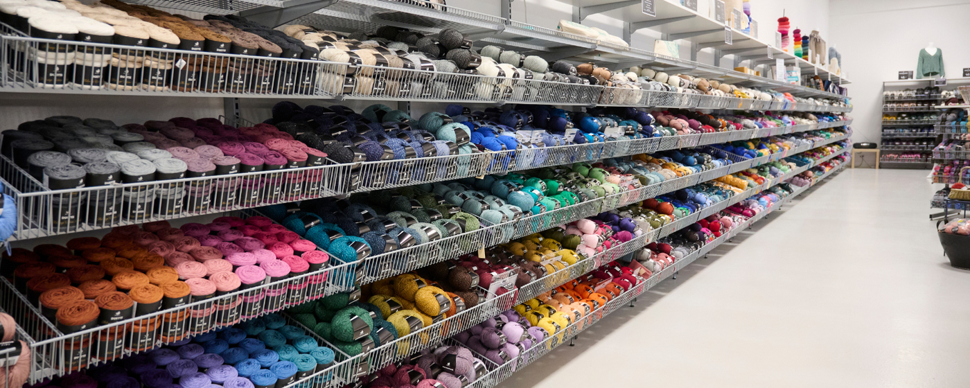 Du finder alt fra lækkert bomuldsgarn til blødt uldgarn i et utal af farver, og derudover har vi også lækkert Knitpro strikke- og hækleudstyr.