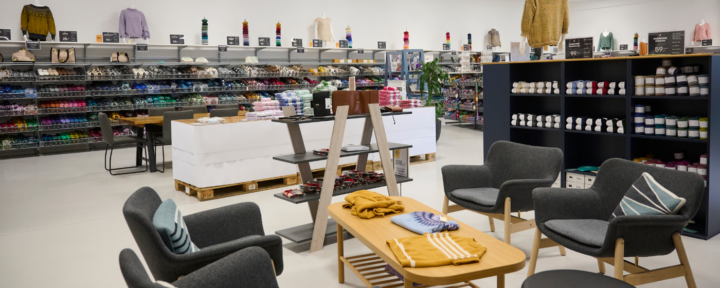 Vores søde medarbejdere står klar til at vejlede dig i forhold til opskrifter og valg af garn. Ved vores printstation kan du udskrive opskrifterne gratis, og købe garnet med det samme i Showroomet – så kan du komme i gang lige så snart du kommer hjem.