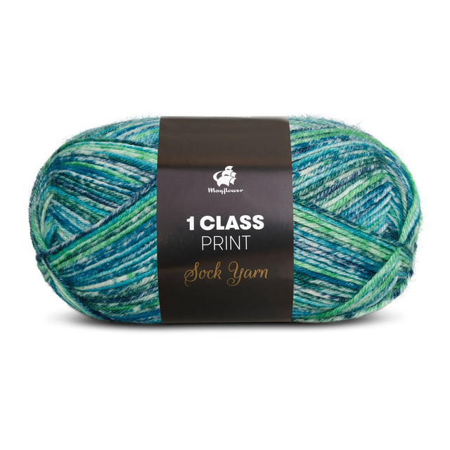 Mayflower 1 Class Print er en farverig udgave af vores klassiske strømpegarn, Mayflower 1 Class, hvor de forskellige farvenuancer spiller flot sammen og giver nogle flotte strømper.