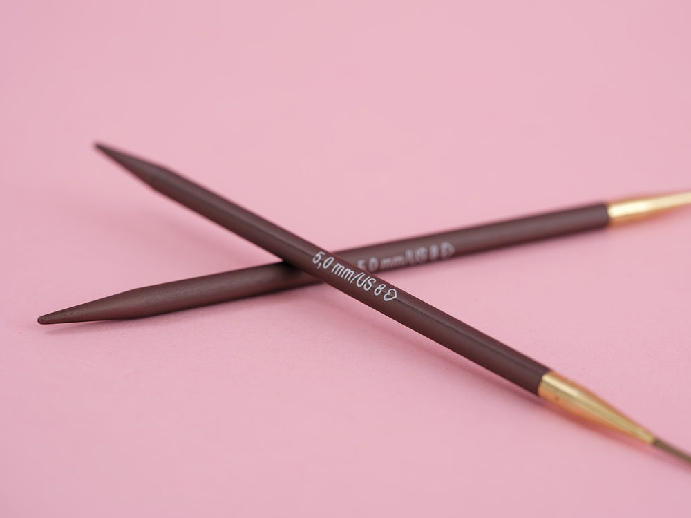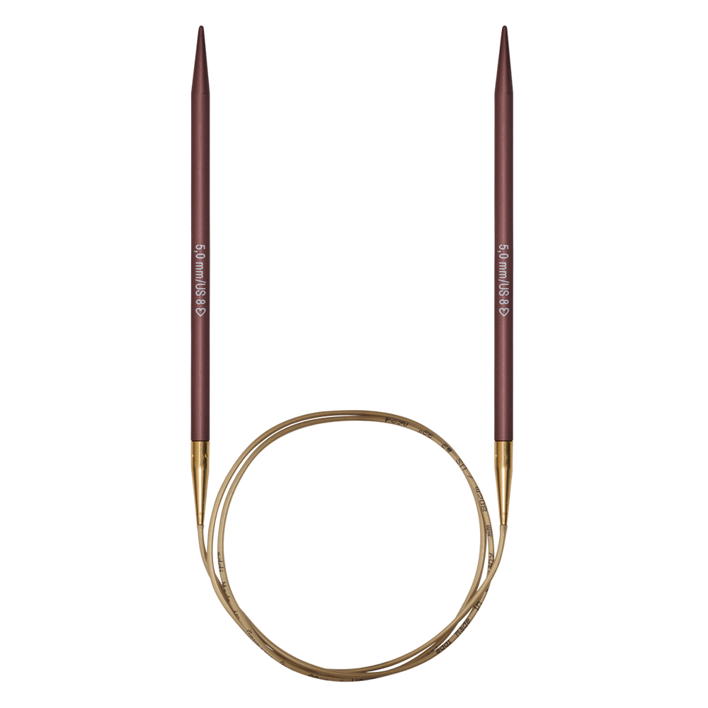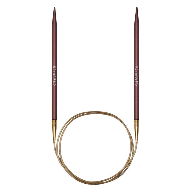 Faste rundpinde i holdbart aluminium i serien Mystic Lace fra ADDI. Rundpindene fås fra 2.00-8.00 mm i enten 60 eller 80 cm.