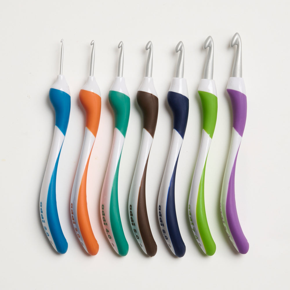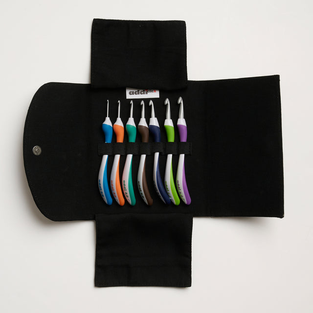 Addi Swing hæklenålesæt med 7 hæklenåle i størrelserne 2, 3, 4, 5, 6, 7 og 8 mm, som er en sand fornøjelse af hækle med, fordi de har ergonomiske greb, der gør, at du slapper mere af i hånden og armen, når du hækler. Hæklenålene kommer i et praktisk etui, der hjælper dig med at holde styr på dit hækleværktøj.