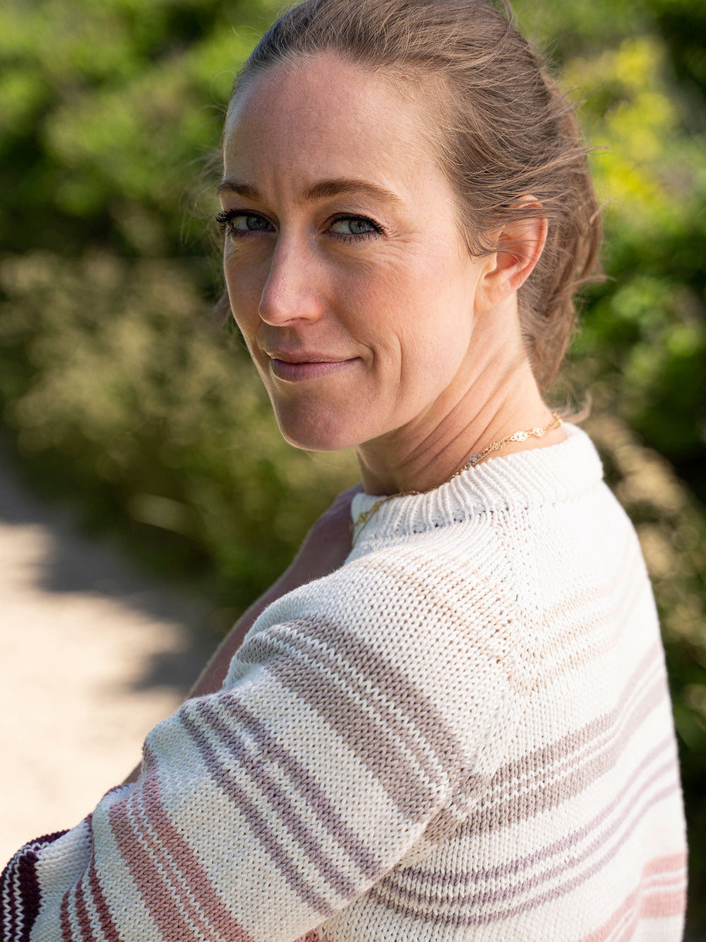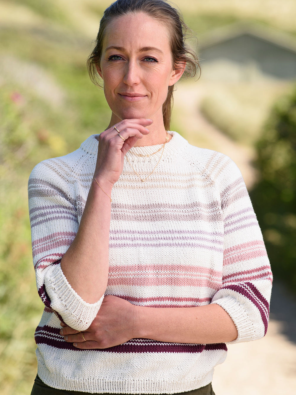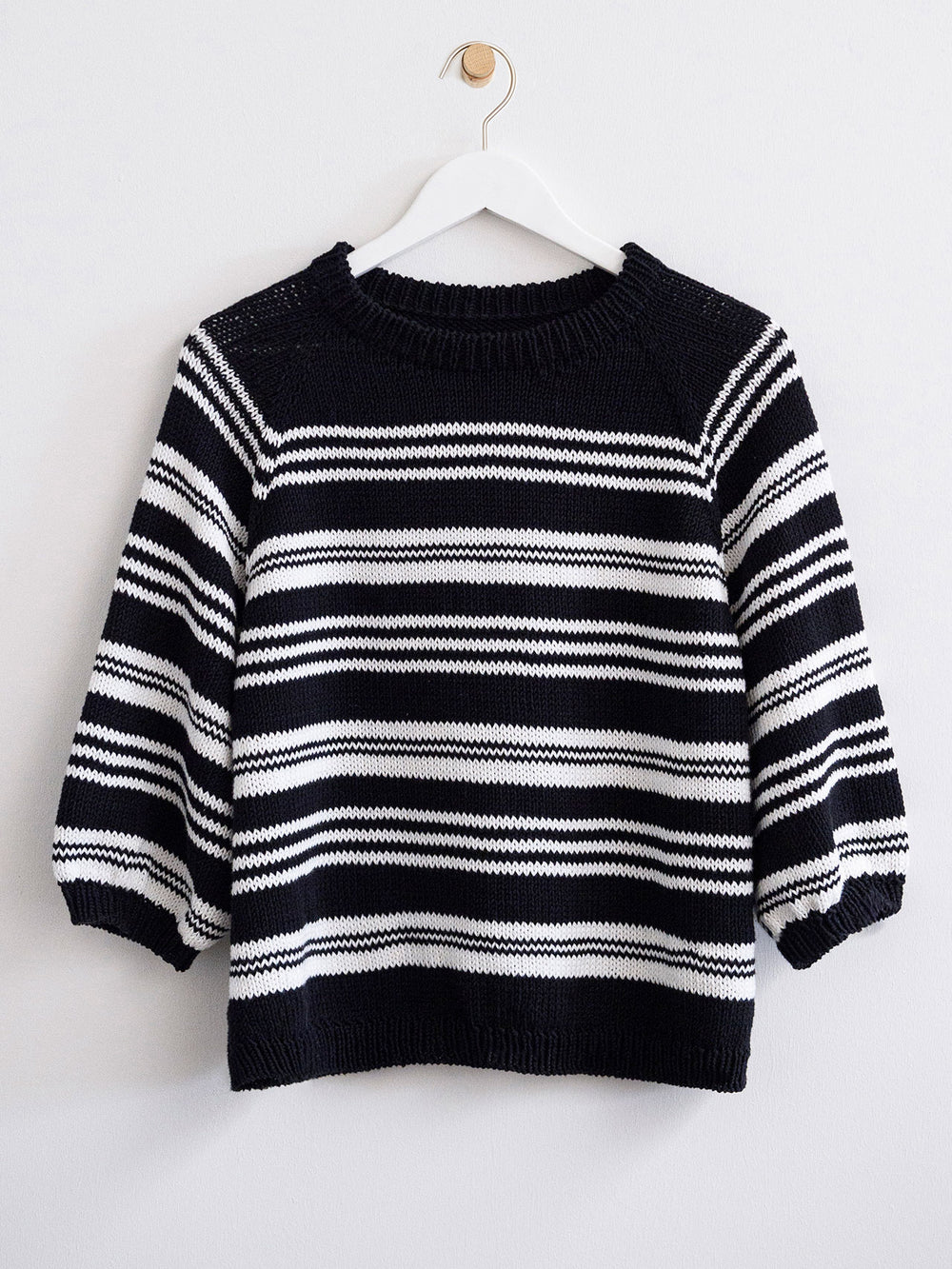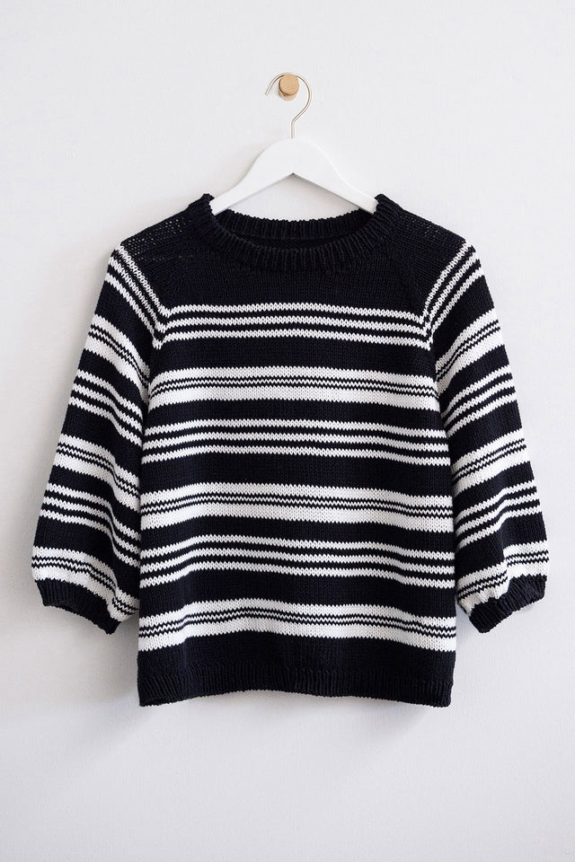 Alva Blusen er designet med striber, hvor du kan lade din fantasi få frit spil. Du kan vælge en ensfarvet stribe som i vores model, ligesom du kan vælge 2, 3 eller flere farver til striberne, hvis du er har svært ved at vælge mellem de mange flotte farver, som Amalfi kommer i. Blusen kan naturligvis også strikkes helt ensfarvet i din absolutte yndlingsfarve.