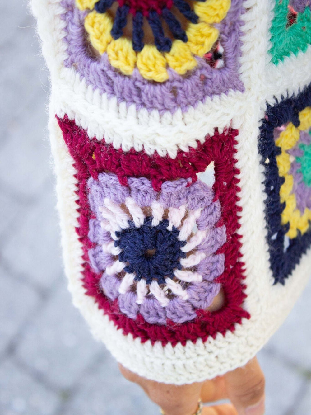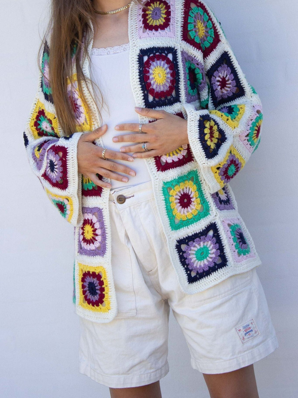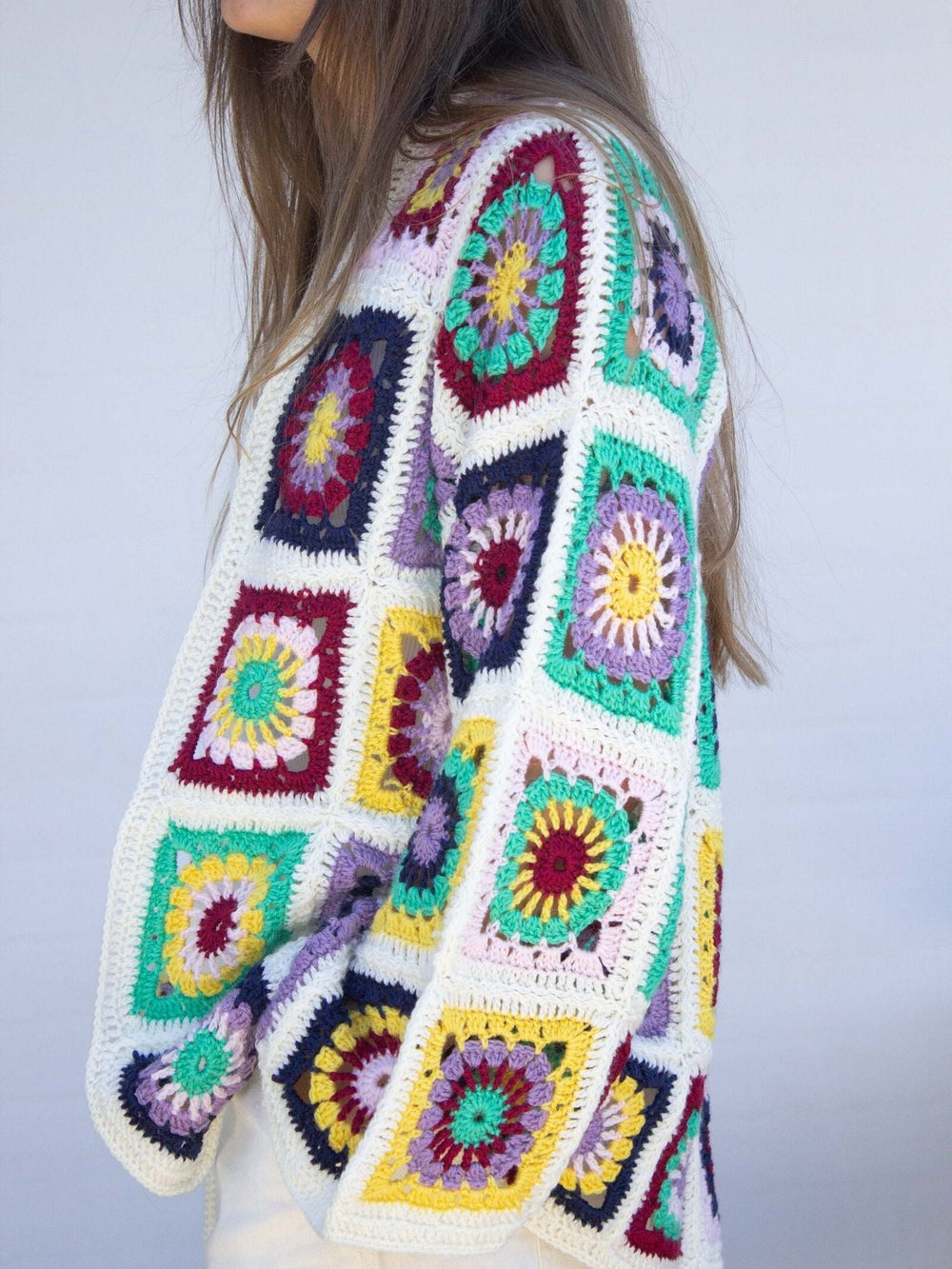 Fed cardigan, som er opbygget af en masse hæklede oldemorfirkanter. Oldemorfirkanter er et meget overskueligt hækleprojekt at give sig i kast med, da hver enkelt firkant ikke tager så lang tid at lave. Projektet er derfor nemt at gå til og fra, ligesom det er oplagt at tage med på tur, da det ikke fylder så meget i en taske.