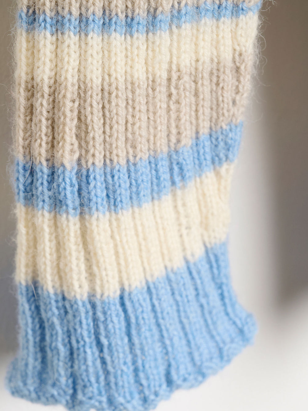 Opskriften er relativ begyndervenlig. Mønsteret er ribstrikket, hvilket betyder to ret og to vrang, og derudover skal du bare lave farveskifte, som angivet i opskriften.