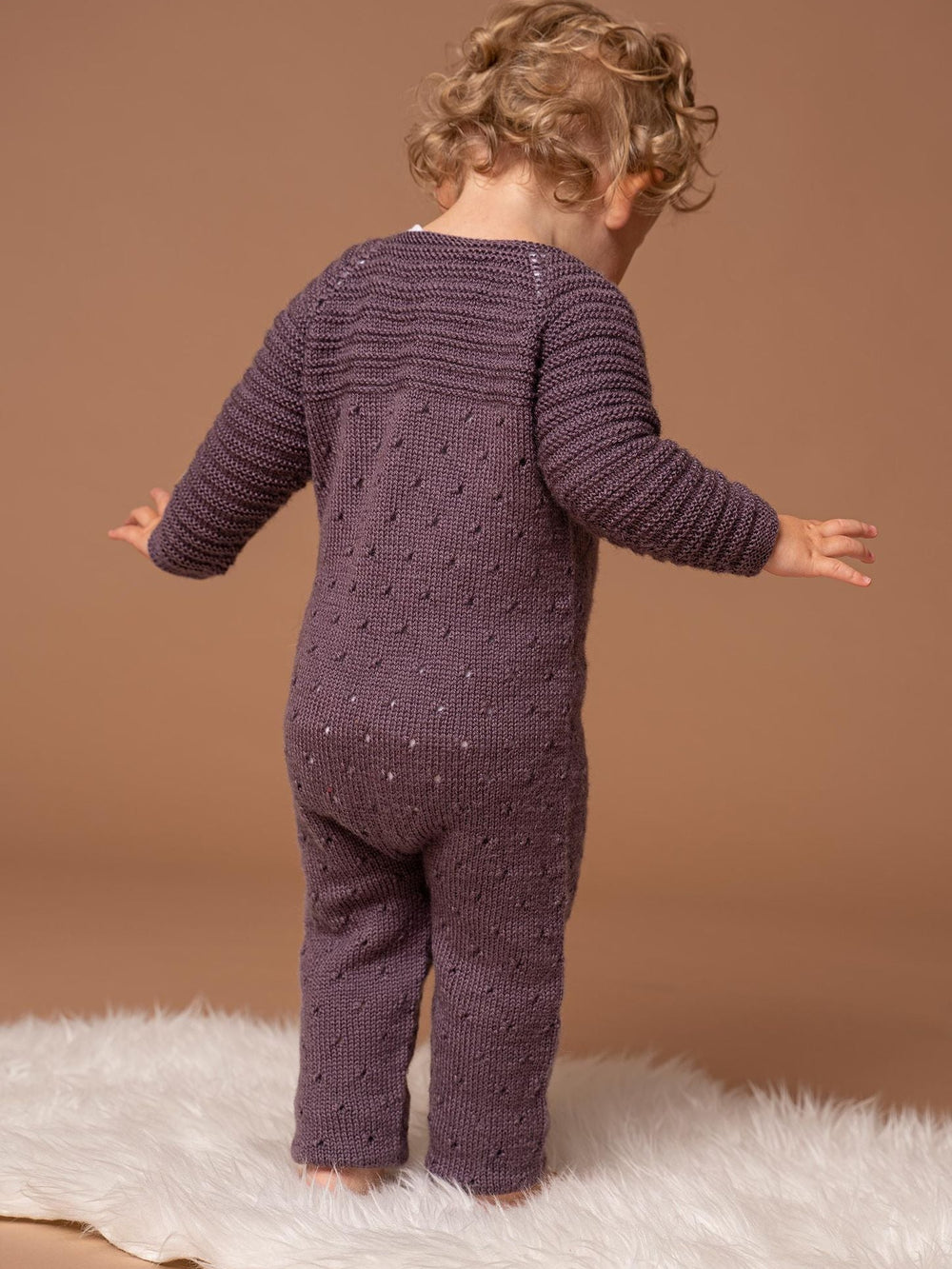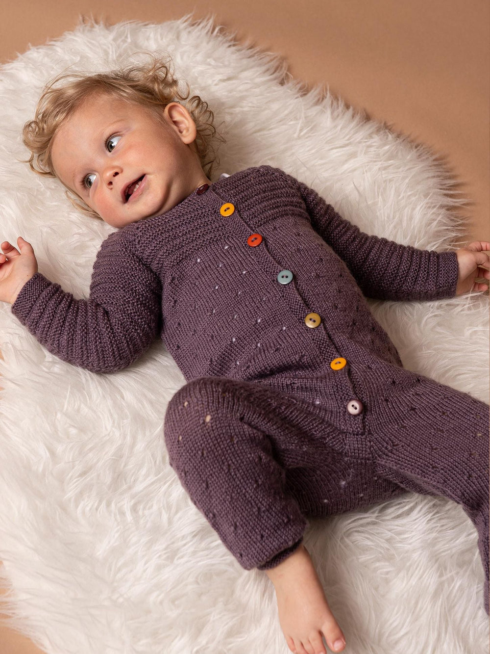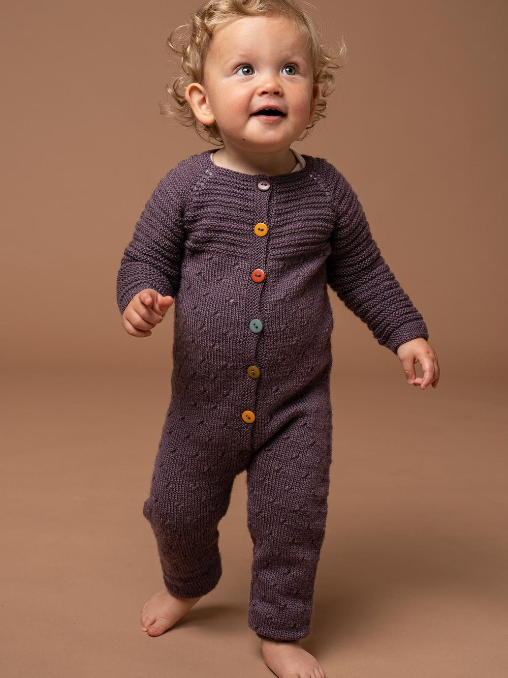 Uldgarn er et godt valg til denne type af babytøj, da uldfibre er dejligt varme. Derfor er heldragten ekstra god til middagsluren i barnevognen på årets kølige dage – eller bare til almindelig leg på gulvet, som nemt kan være køligt.