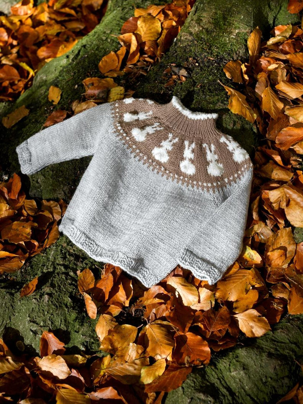 Denne babytrøje er simpelthen så bedårende med de små kaniner på bærestykket.