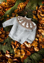 Trøjen er strikket i Mayflower Easy Care, som er ren og blød uld. Som en ekstra bonus kan garnet også maskinvaskes og tørres i tørretumbler, hvilket er perfekt til babystrik og den travle børnefamilie.