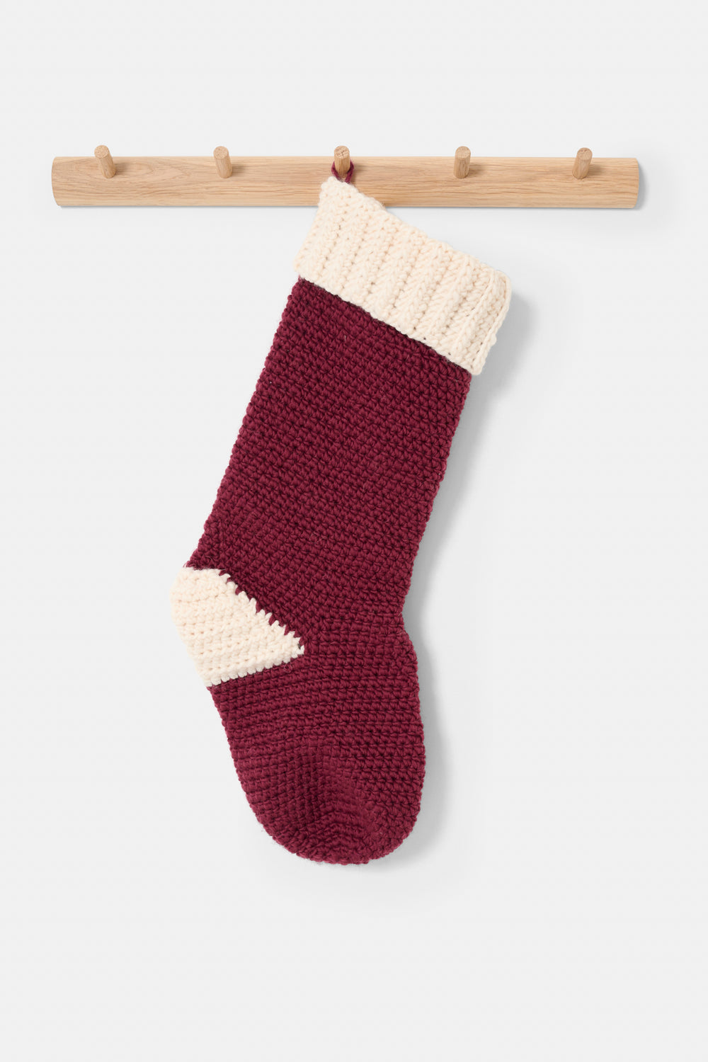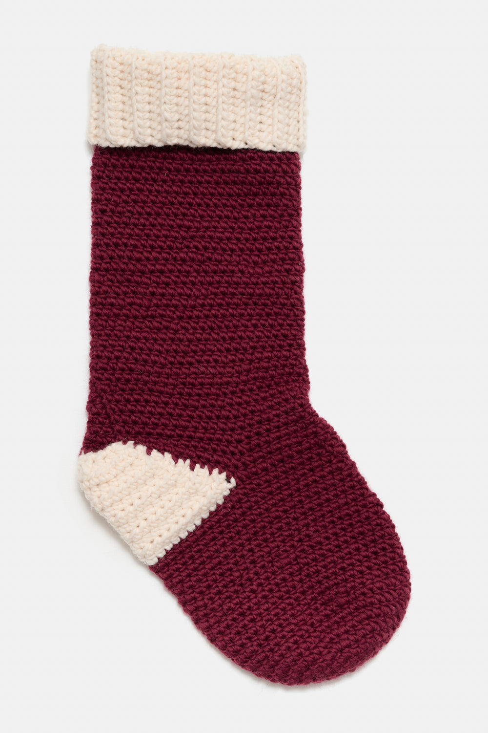 Hæklet julesok med god plads til julegodter.