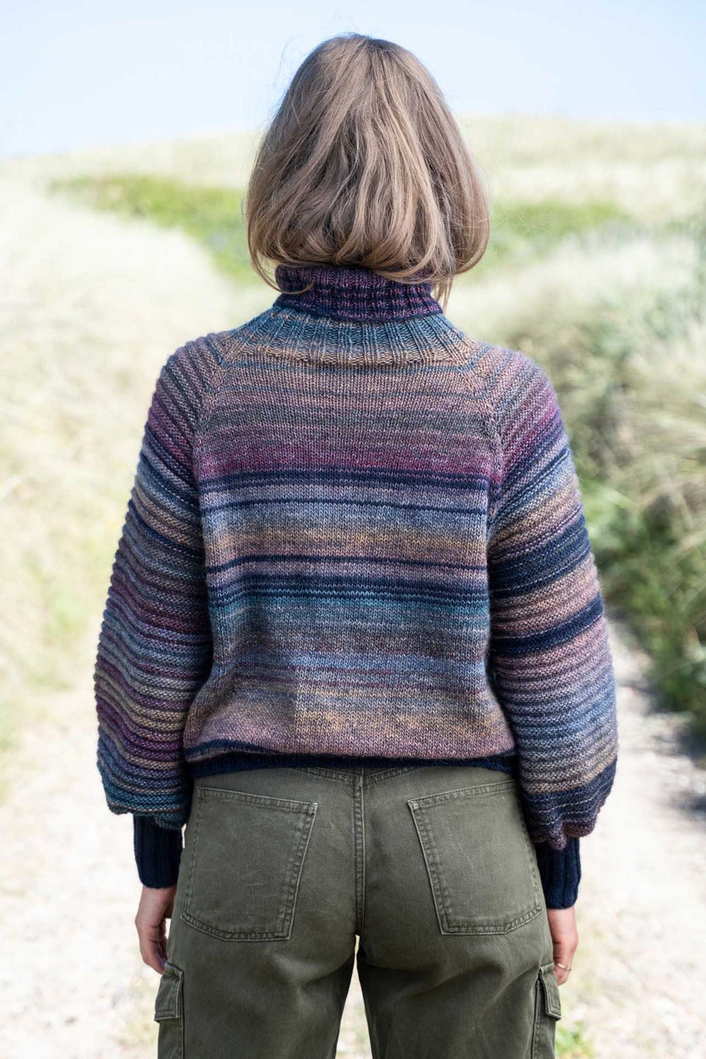 Selve sweateren er strikket i Mayflower Taormina, mens ribkanterne er lavet i Mayflower Easy Care Classic. Her er det naturligvis også en mulighed bare at strikke hele sweateren i samme garnkvalitet, hvis man vil have et mere enkelt projekt. Taormina er kendetegnet af sine flotte farveskift, som giver Beate sweater så meget personlighed. Garnvalget betyder også, at hver eneste Beate sweater bliver helt unik, for det vil aldrig være muligt at strikke to helt ens sweatere.