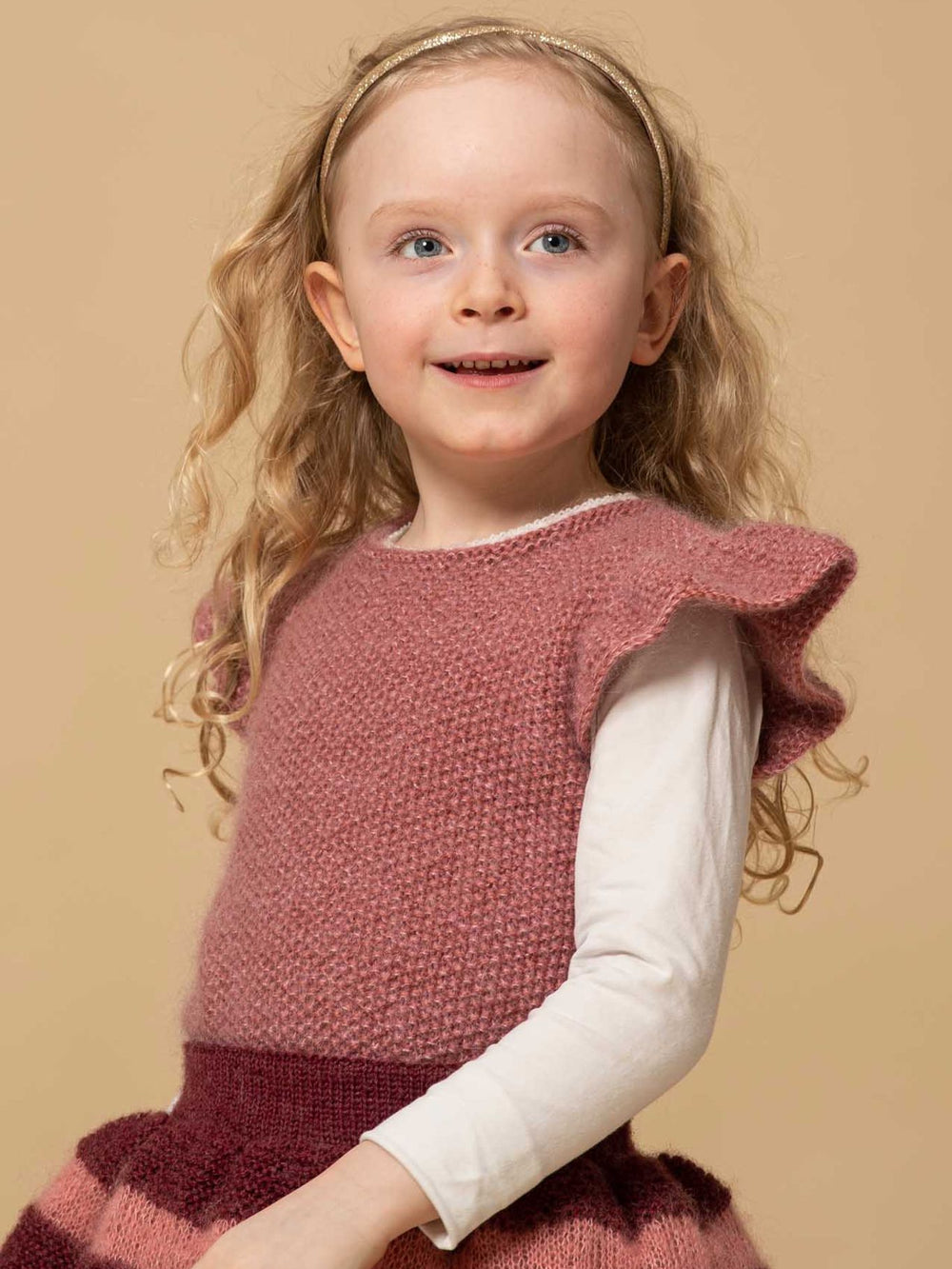 Klokkeblomst Vest Junior er et eventyrligt design, som passer perfekt til enhver pigegarderobe, og som en bonus er den nem at få brugt i hverdagen, da den både kan bruges med bukser, kjole eller nederdel.