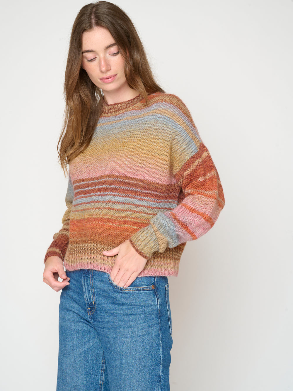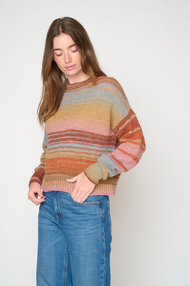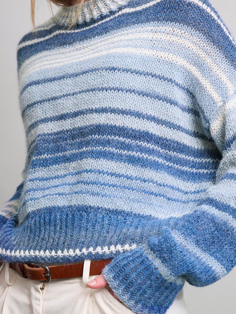 Benita sweateren er en vidunderlig og monteringsfri trøje. Den tager ikke lang tid at strikke og kan nemt kan blive din nye yndlings. Den strikkes i glatstrik oppefra og ned med drop shoulder/europæisk skulder, lige ærmer og kanter strikket i drejet ret. Blusen er strikket i Mayflower Taormina, som er en af vores blødeste og mest lette garnkvaliteter i en alpakablanding med nøje afstemte farveskift undervejs. Vil du hellere have Benita sweateren ensfarvet, kan du bruge Mayflower Taormina Shade, som er fuldstændig samme garnkvalitet med enslydende strikkefasthed, som det garn, der er angivet i opskriften.