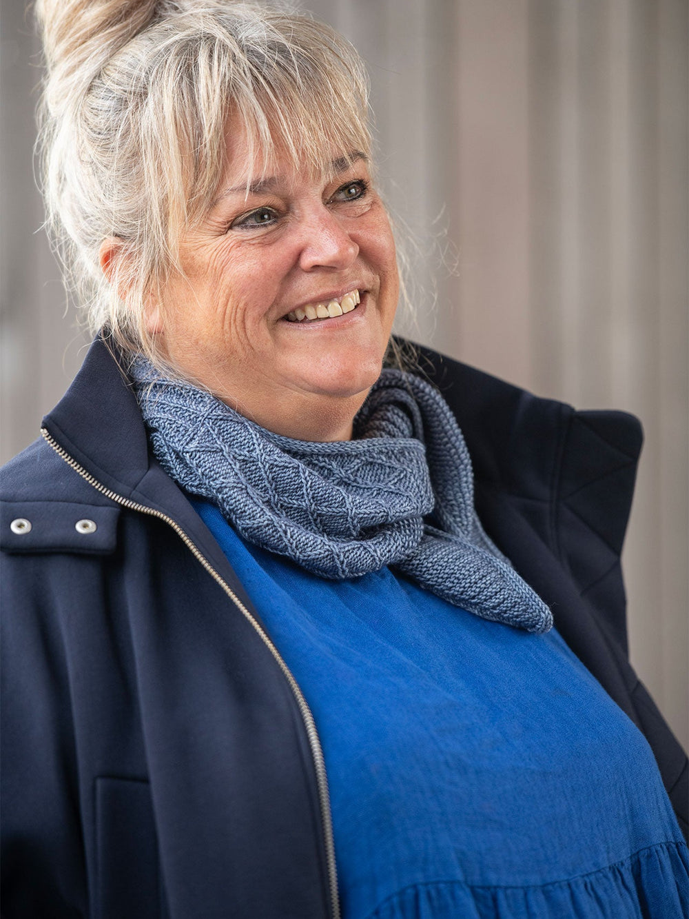 Strikket i Amadora er tørklædet meget lækkert at have om halsen. Det fine og lune garn er spundet på ren merinould og har derfor en virkelig lækker struktur.