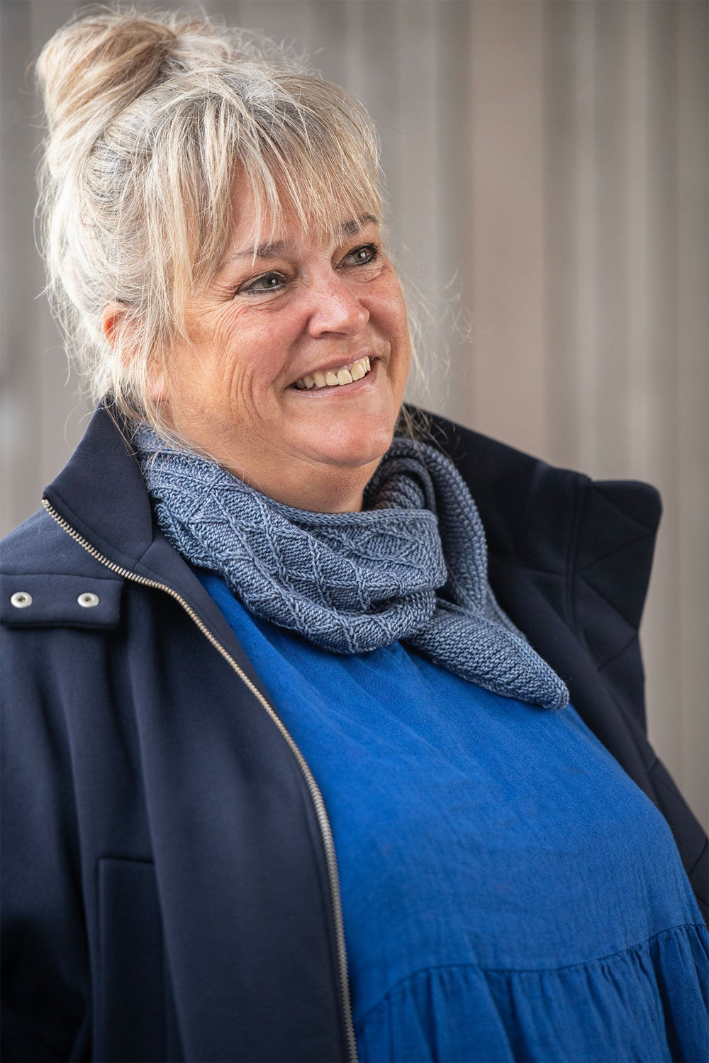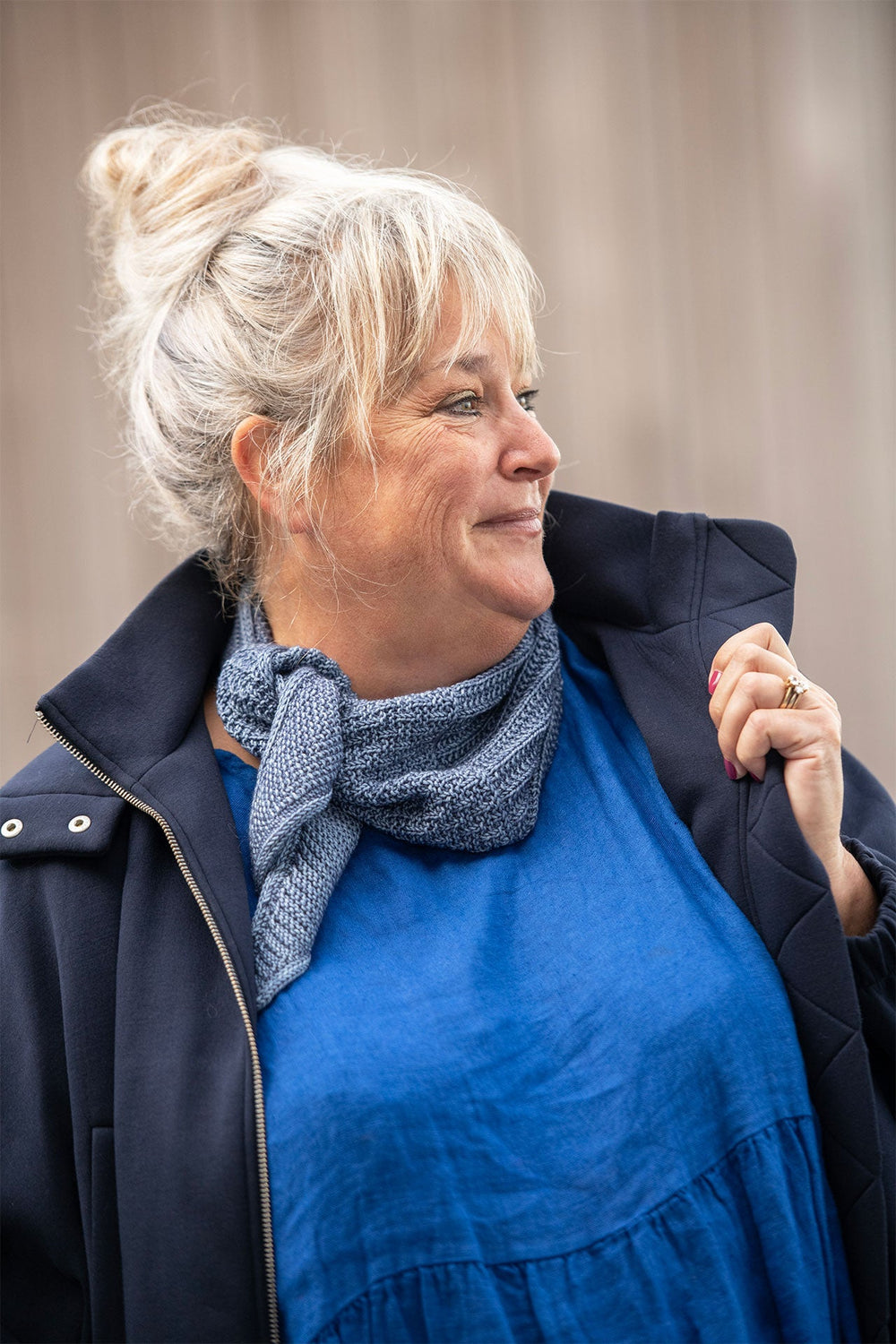 Berlin tørklædet har et smalt design og føles derfor ikke stort og klodset rundt om halsen.