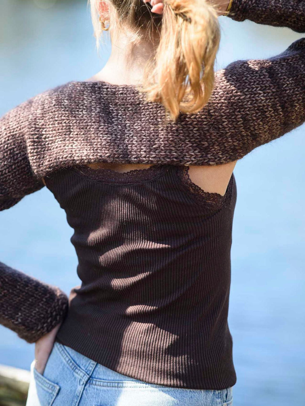 Beths sjælevarmer har en god og vamset struktur, da den strikkes i det fyldige Mayflower Montreal med Mayflower Super Kid Silk som følgetråd. Mohairgarnet bidrager til både det vamsede look og blødheden. Montreal er et virkelig lækkert uldgarn, som er håndfarvet og derfor har et betagende farvespil.