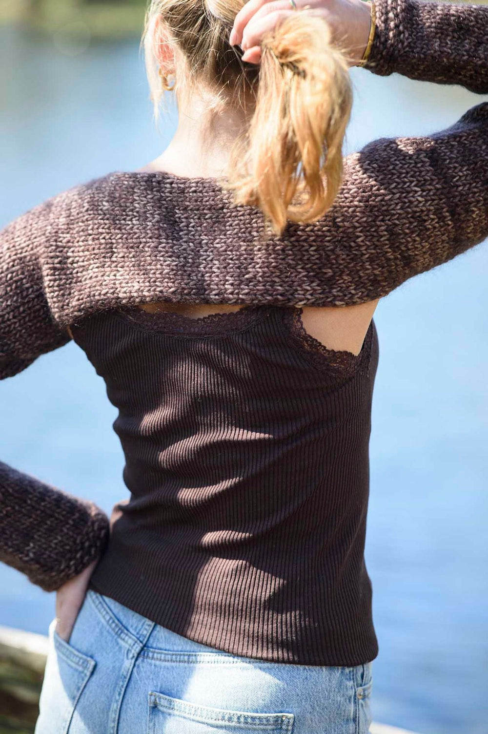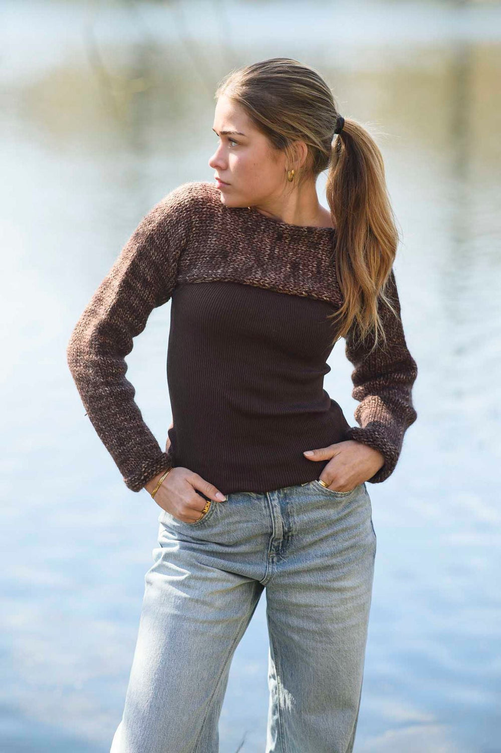 Sjælevarmeren strikkes i glatstrik fra ærme til ærme og er derfor underholdende at strikke.