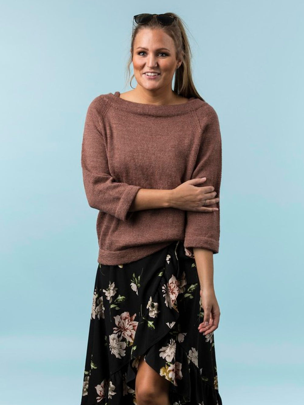 En strikket bluse behøver hverken at være tung eller vinteragtig, og derfor har vi valgt at designe denne lækre bluse med bare skuldre og stropper. Dermed får blusen et mere let og ungdommeligt udseende og adskiller sig fra de fleste andre strikkede bluser.