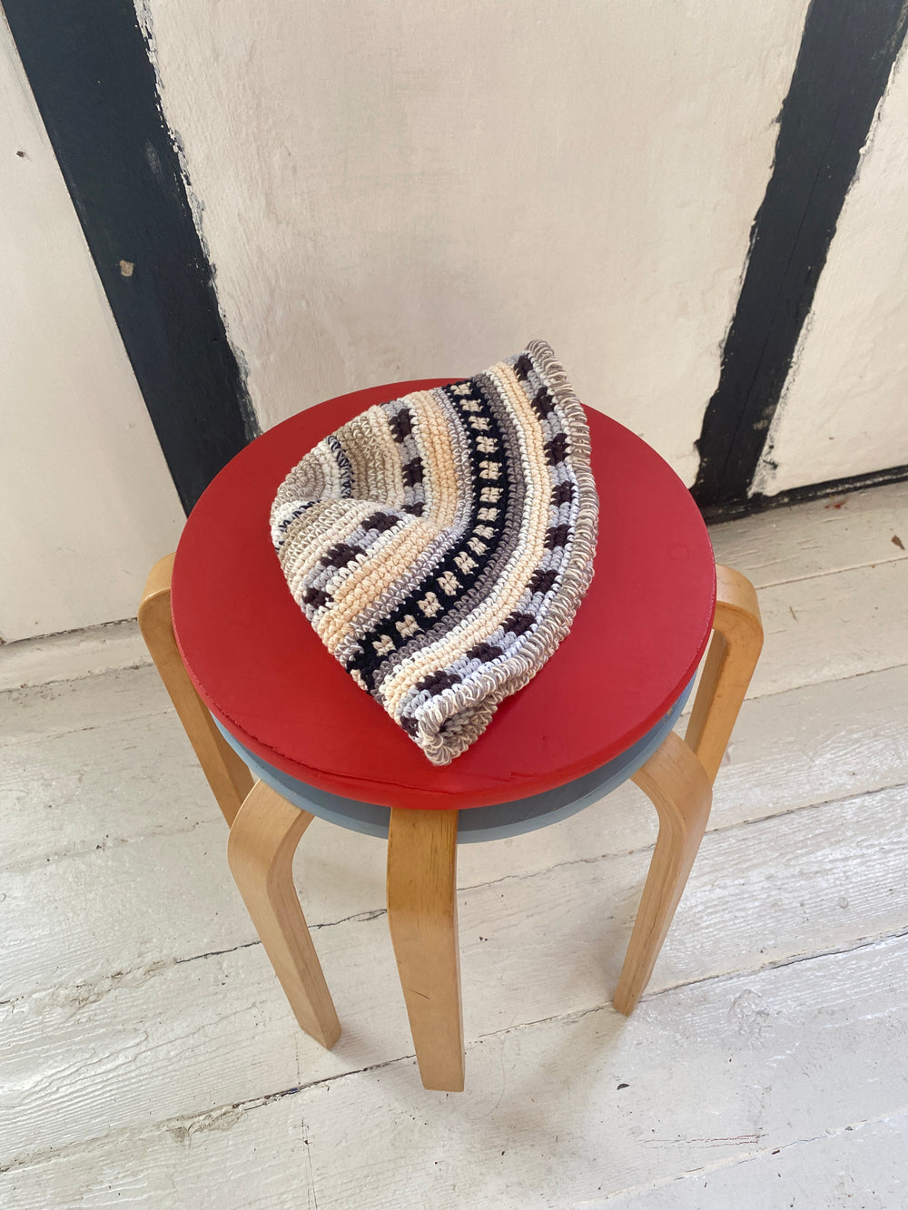Opskrift på en hæklet bøllehat med grafisk mønster. Der er rig mulighed for at sætte dit eget præg på hatten gennem brug af forskellige farvekombinationer