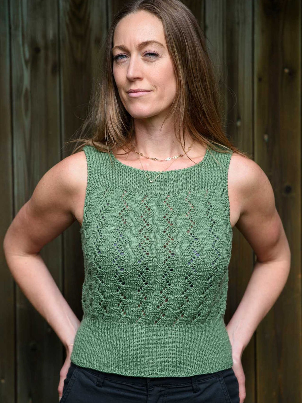 Toppen strikkes i Mayflower Cotton Merino, som er spundet af uld og bomuld. Begge er bløde fibre med gode egenskaber. Uld giver en isolerende og varmende effekt og derfor en lun sommertop, og indholdet af bomuld sikrer, at toppen stadig er åndbar og behagelig at bære på selv en varm sommerdag. Garnet giver derfor en dejlig blød og behagelig top, som passer til flere årstider.