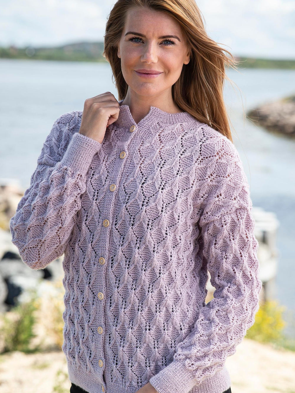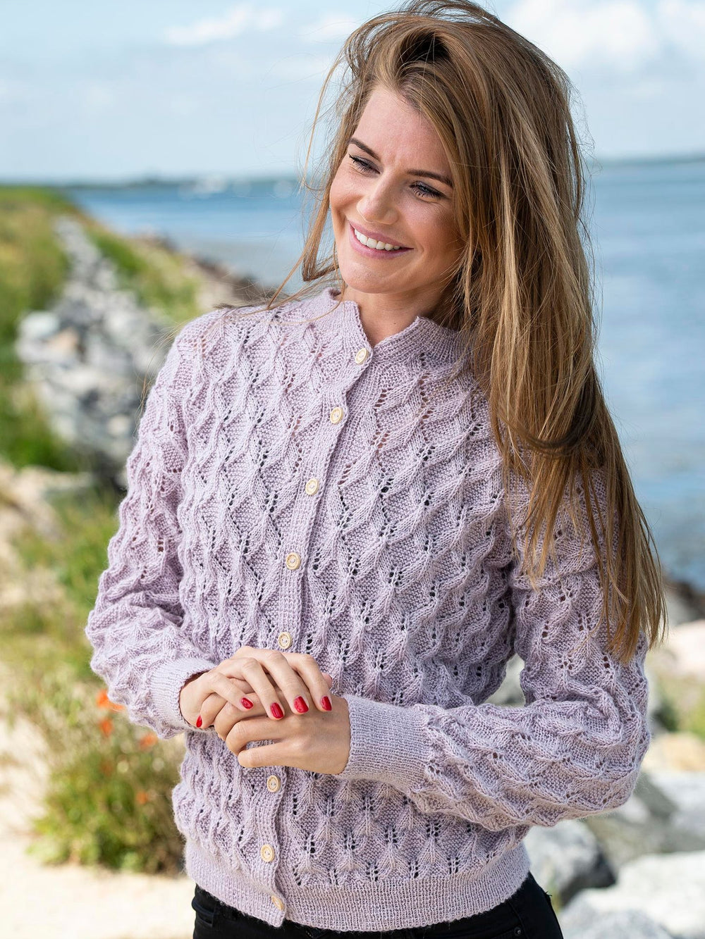 En smuk og meget feminin cardigan med det fineste hulmønster på både krop og ærmer. Mønstret er dejligt udfordrende at strikke.