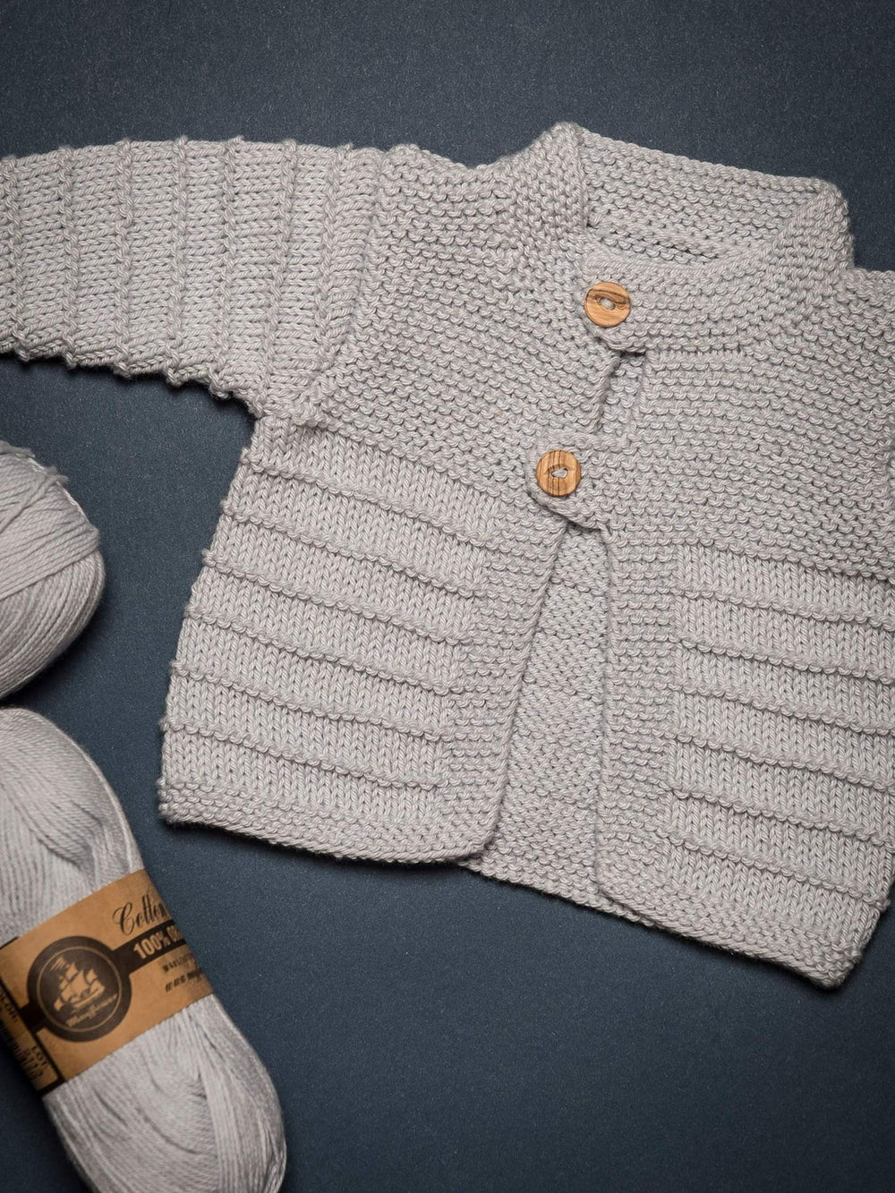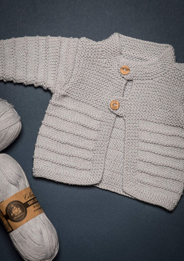 Trøjen strikkes i Mayflower Cotton 8/4 Organic, som er 100% økologisk bomuld med høj åndbarhed. Perfekt til baby, som nemt skal kunne af med varmen.