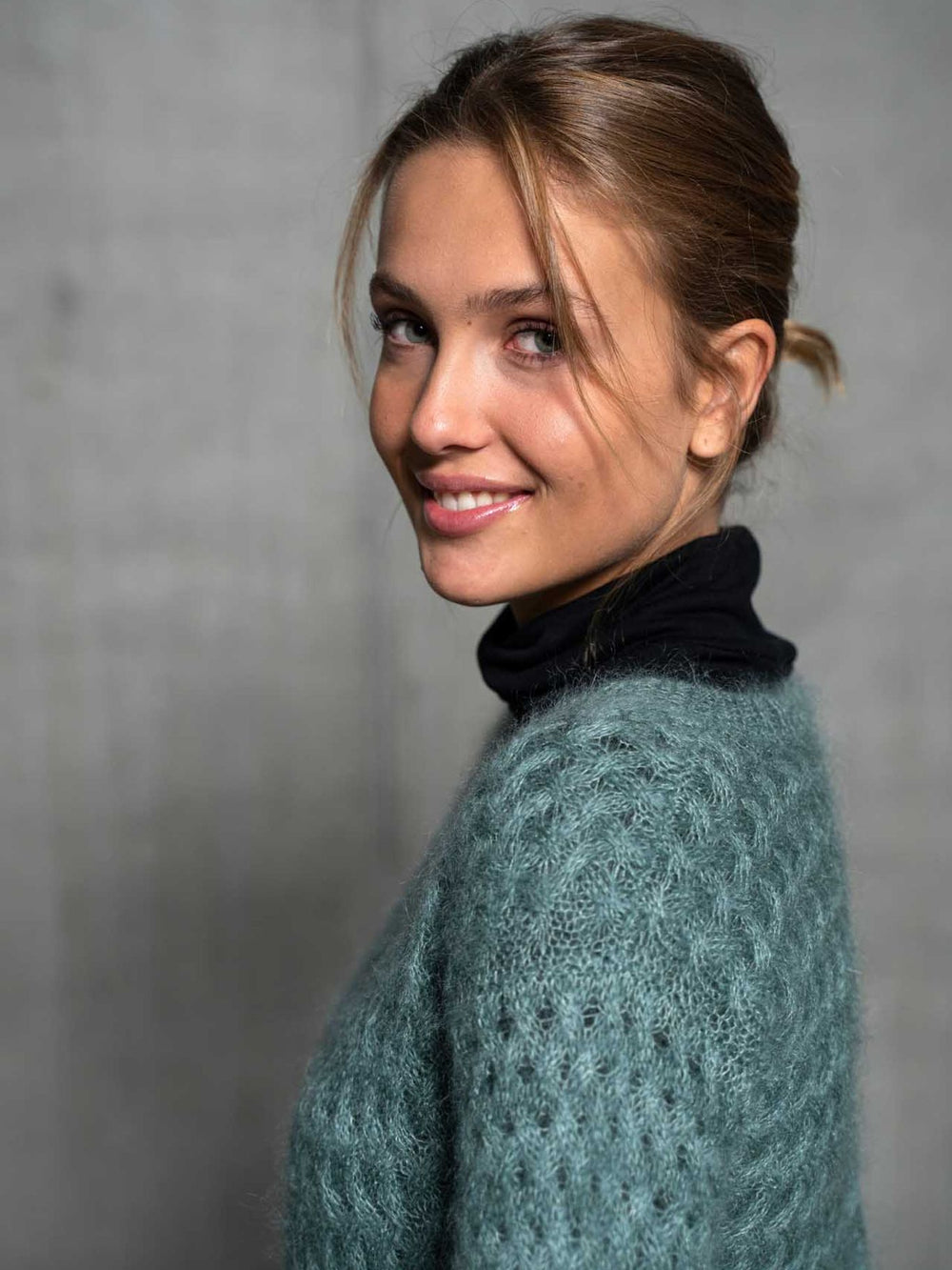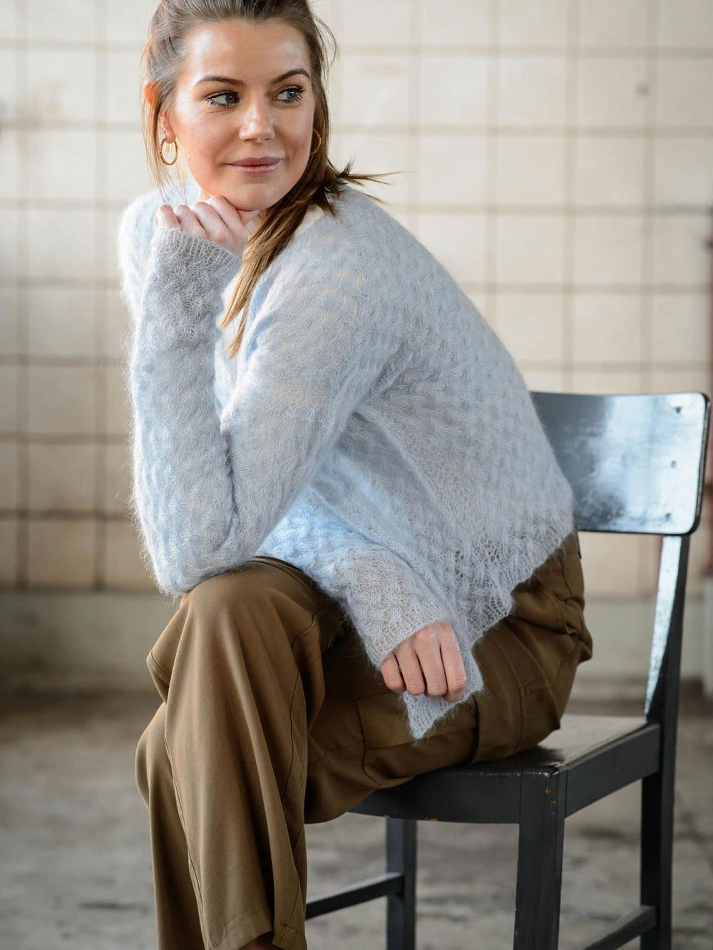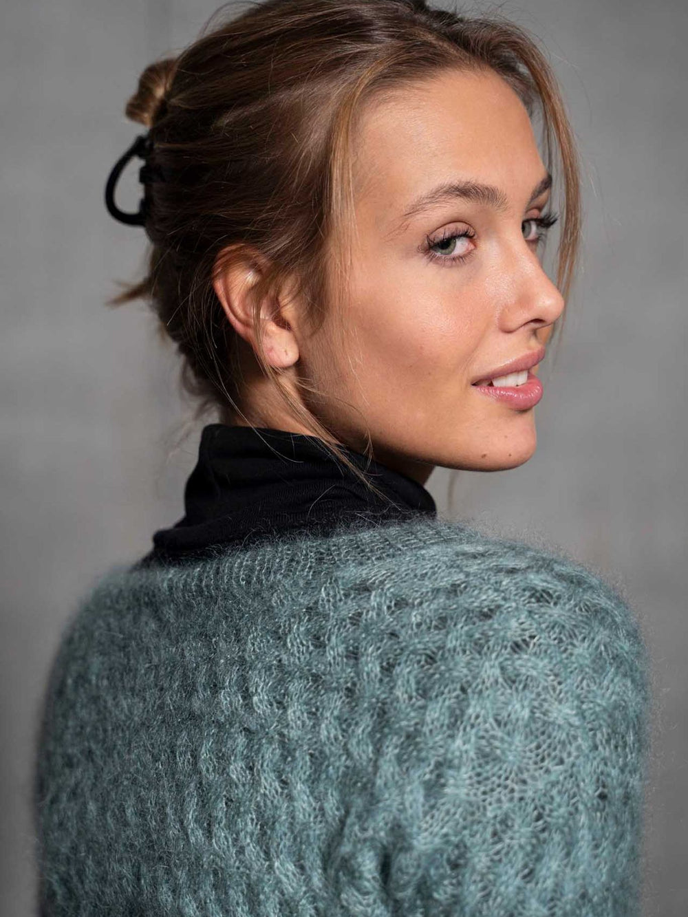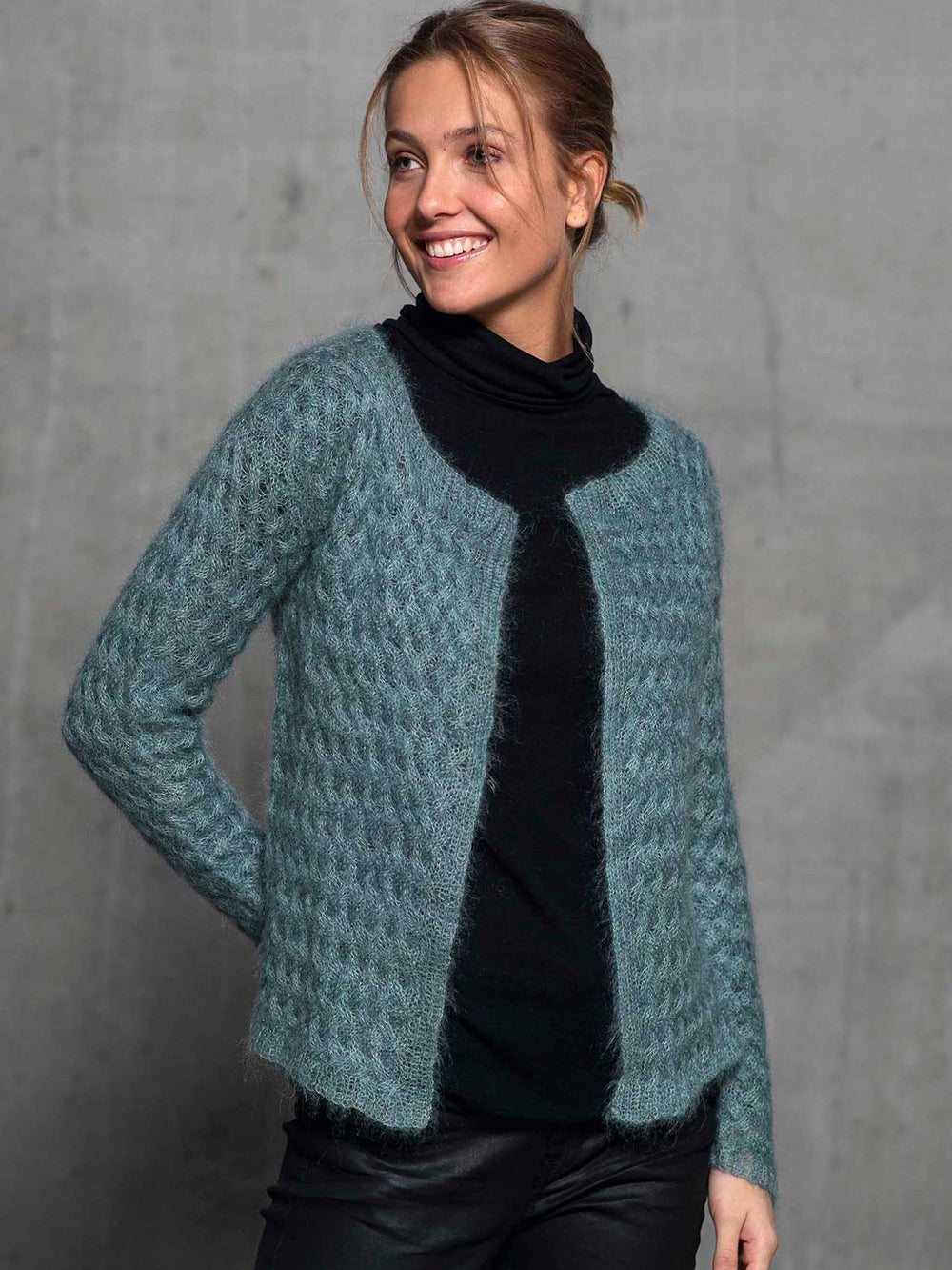 Cardiganen får ekstra luftighed fra pindevalget, da den er strikket på pind 4½ og 5, og den er derfor også et forholdsvis hurtigt strikkeprojekt til den utålmodige strikker.