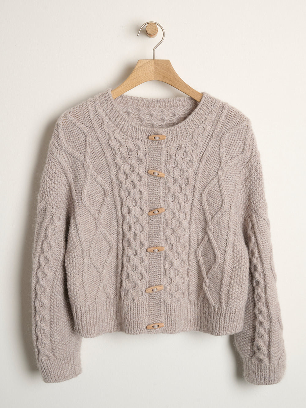 Dagmar jacket fra PetiteKnit er en virkelig skøn og vamset cardigan, som strikkes oppefra og ned i strukturstrik i forskellige mønstre. Cardiganen monteres med knapper.