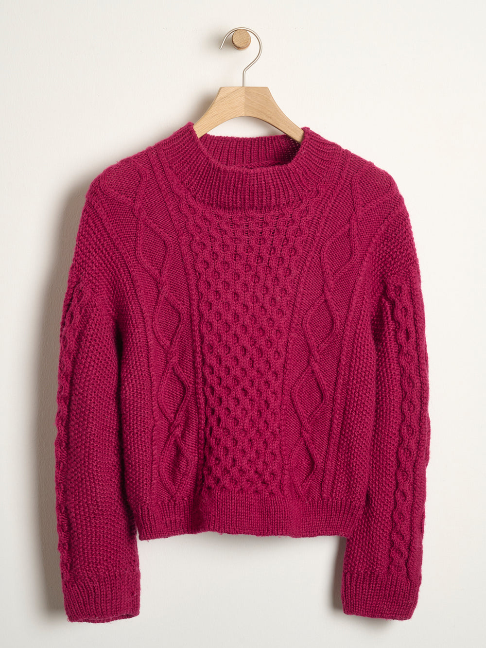 Sweateren strikkes i Mayflower Easy Care Big, hvilket resulterer i en blød og lun trøje, som er virkelig god i årets kolde måneder. Garnet kradser ikke, og sweateren tåler både maskinvask og tørretumbler.