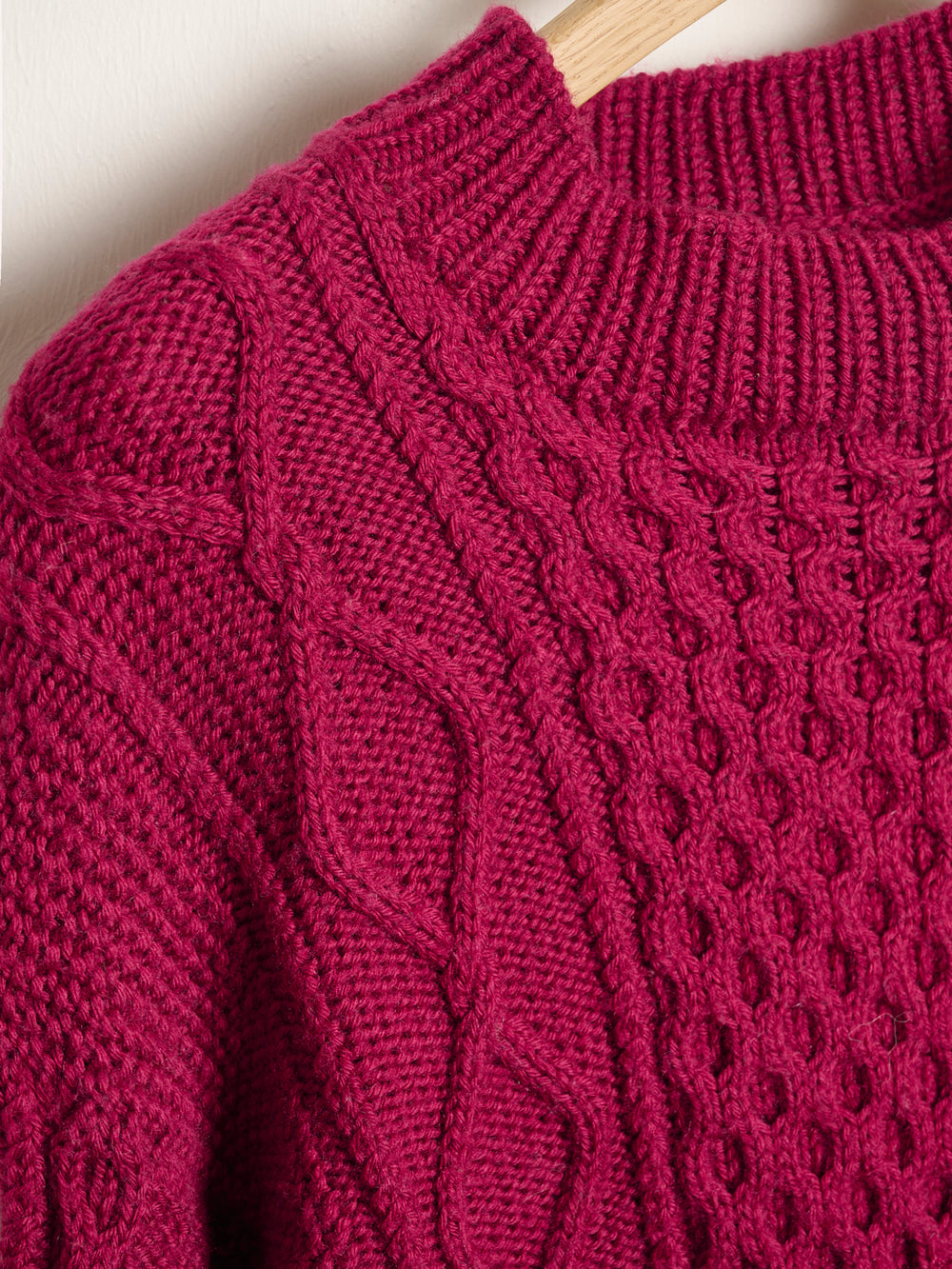 Dagmar sweater fra PetiteKnit er strikket topdown i forskellige strukturmønstre og med kanter i rib.