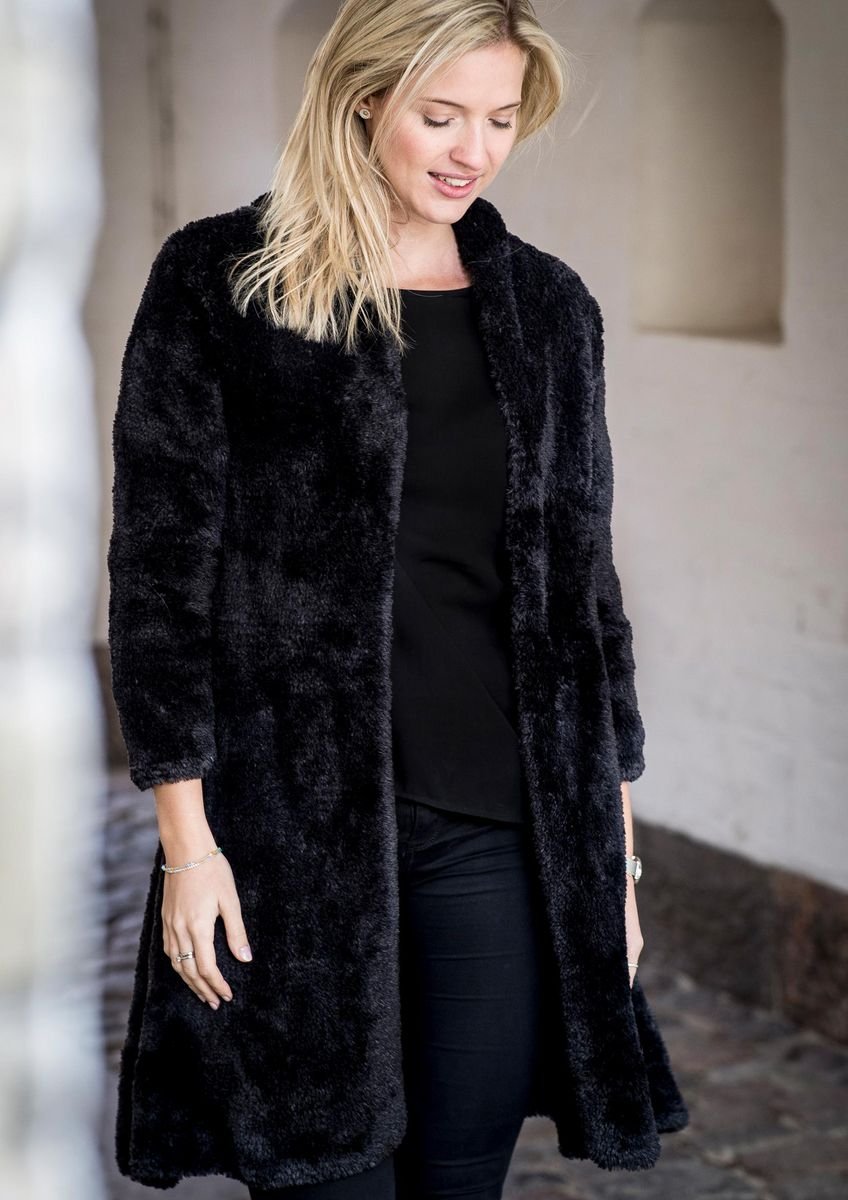Smart og meget moderne helt oppe i tiden Fake Fur damejakke med hætte. Denne meget moderne jakke med hætte er strikket i det meget populære imiteret pels garn fra Mayflower. Mayflower Fake Fur er den helt rigtige garn du skal strikke imiteret pels i når du ønsker looket og følelsen af pels, men IKKE ønsker at det skal gå ud over dyrene. Mayflower går meget op i at dyr har det bedst på alle mulige tænkelige måder, derfor går vi ind for imiteret pels look. Mayflower Fake Fur er nu anvendt til mange smukke dejlige beklædningsgenstande som du kan se på hjemmesiden. Se de mange smukke moderigtige farver som Mayflower Fake Fur findes i og download denne opskrift samt de mange andre på denne lækre jakke med hætte ganske gratis. Den er blød smuk og lækker varm.