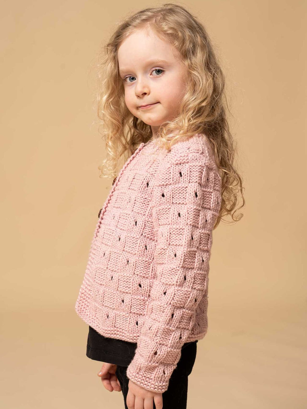 Den Lille Havfrue Cardigan er et perfekt eksempel på børnestrik, hvor fantasien har fået frit løb, og resultatet er blevet denne eventyrlige cardigan. I dette design har et traditionelt, ternet strikmønster fået et lille twist, idet hvert andet tern har et hul i midten. Cardiganen afsluttes med retstrikkede kanter, som er prikken over i’et.