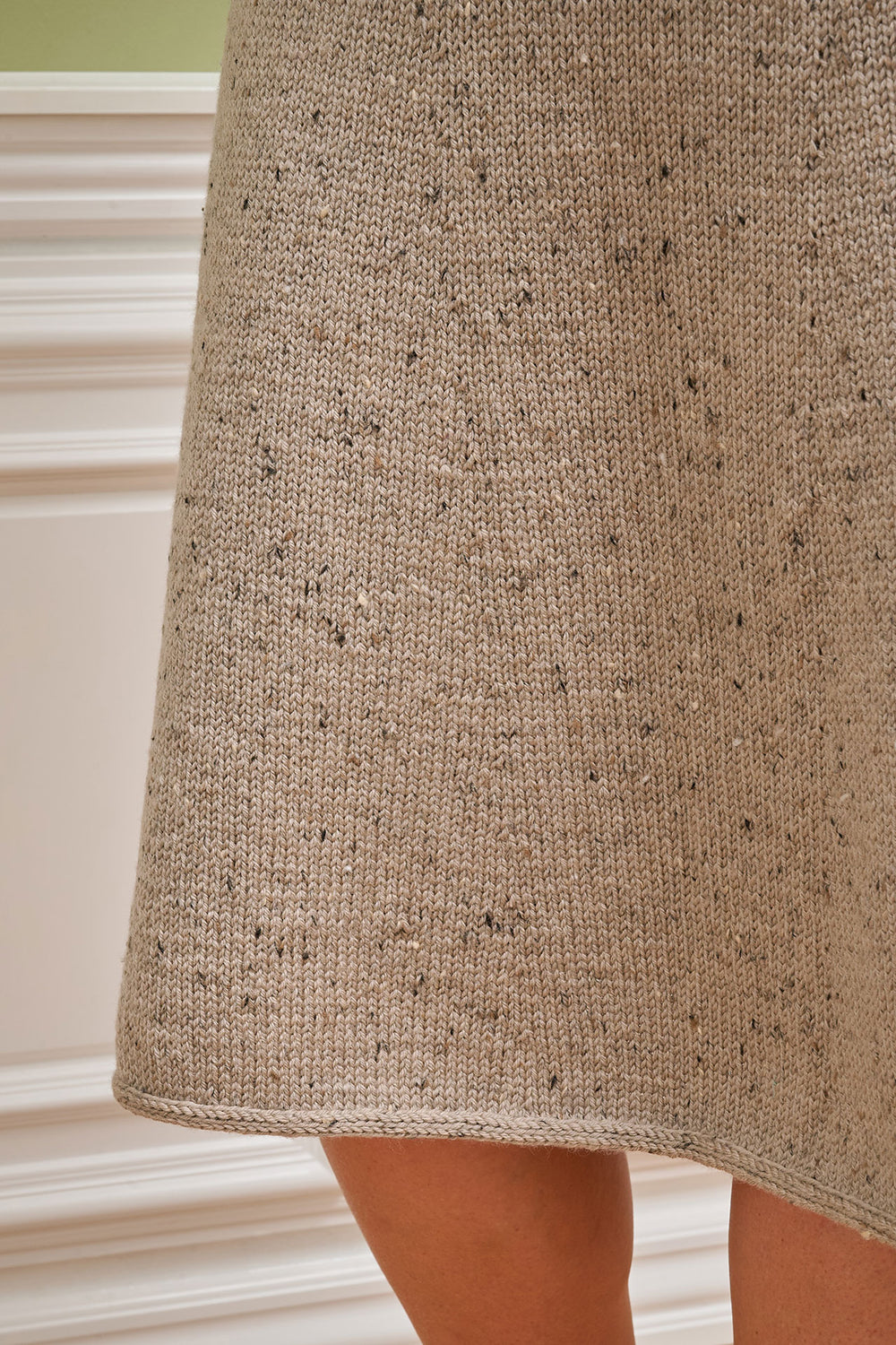 Ulden og klassisk nederdel med et enkelt design, som strikkes oppefra og ned. Nederdelen har et flot spil i farverne, da den strikkes i garn med tweednister. Den bløde nederdel monteres med et elastikbånd i livet og kan bruges til flere forskellige anledninger, hvor den både kan pyntes op og ned.