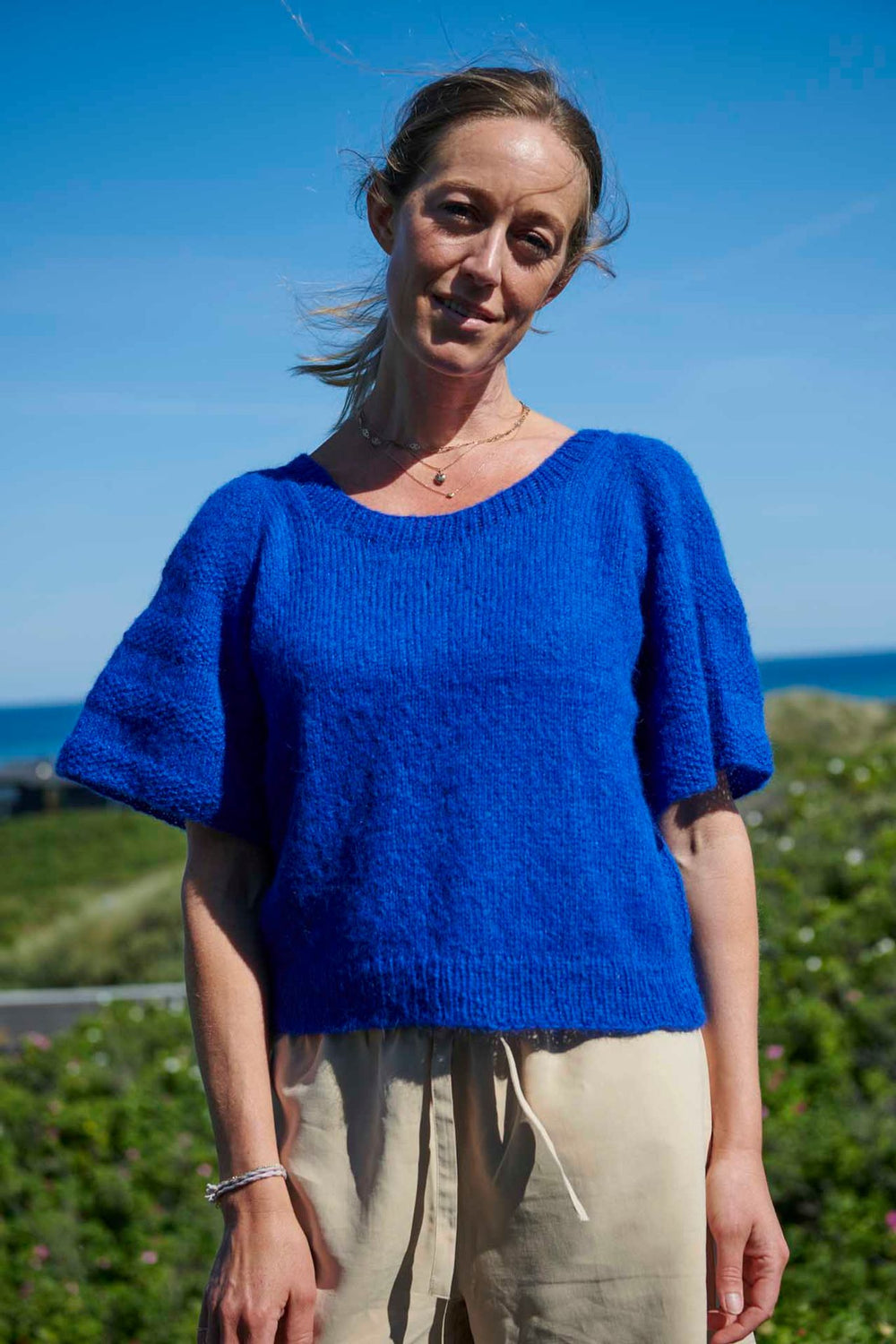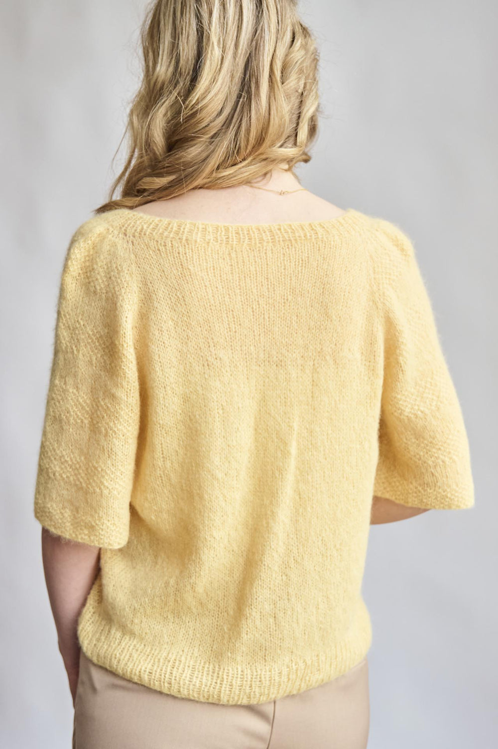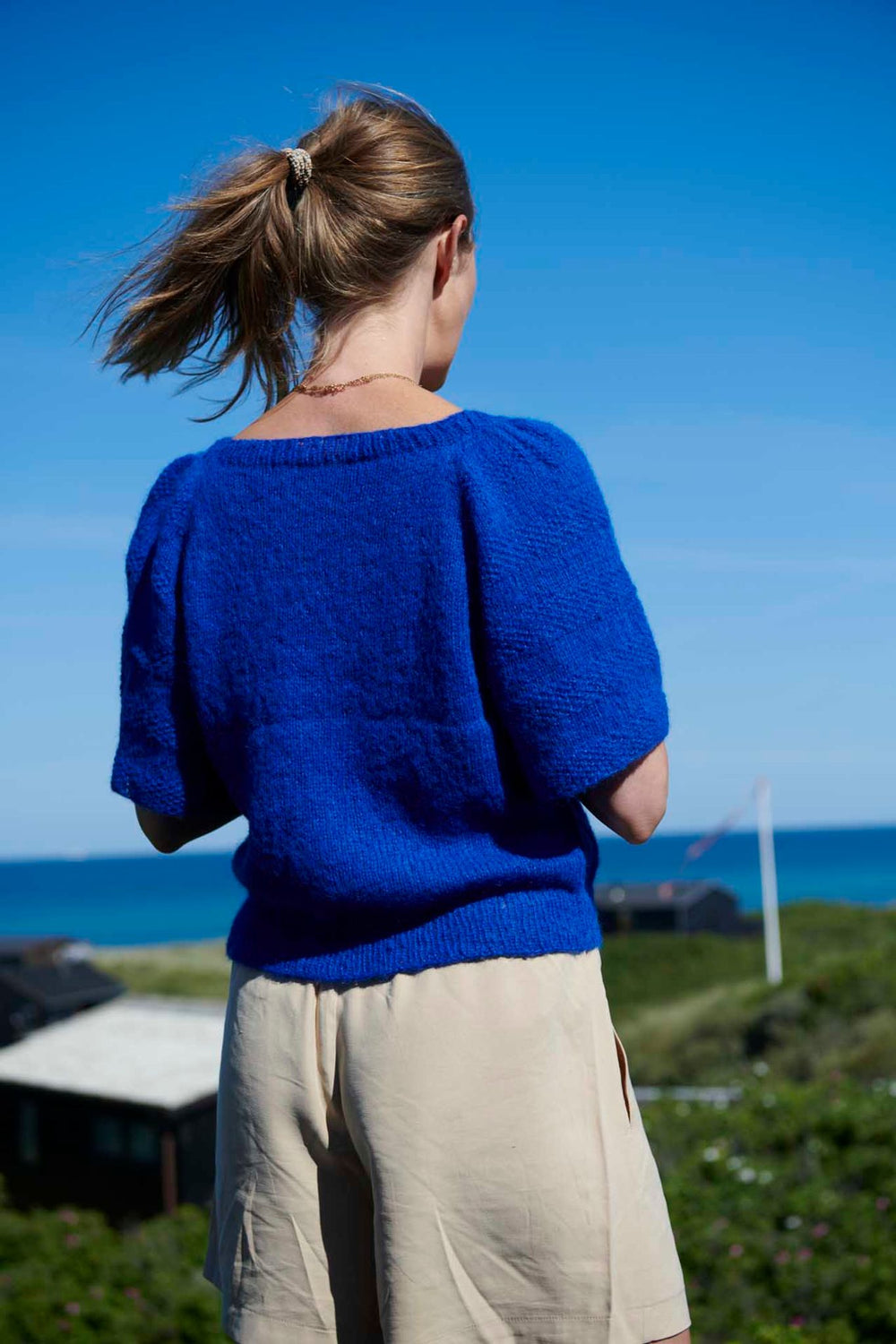 Diana tee strikkes topdown med raglanudtagninger og er en virkelig blød, let og luftig kortærmet bluse. Den strikkes i glatstrik, men med en kombination af glatstrik og perlestrik på de korte ærmer, hvilket danner en enkel og fin kontrast til den øvrige glatstrik. Diana tee er oplagt til helårsbrug, da den er god på varme dage, ligesom den også er oplagt at bruge med en langærmet bluse under.