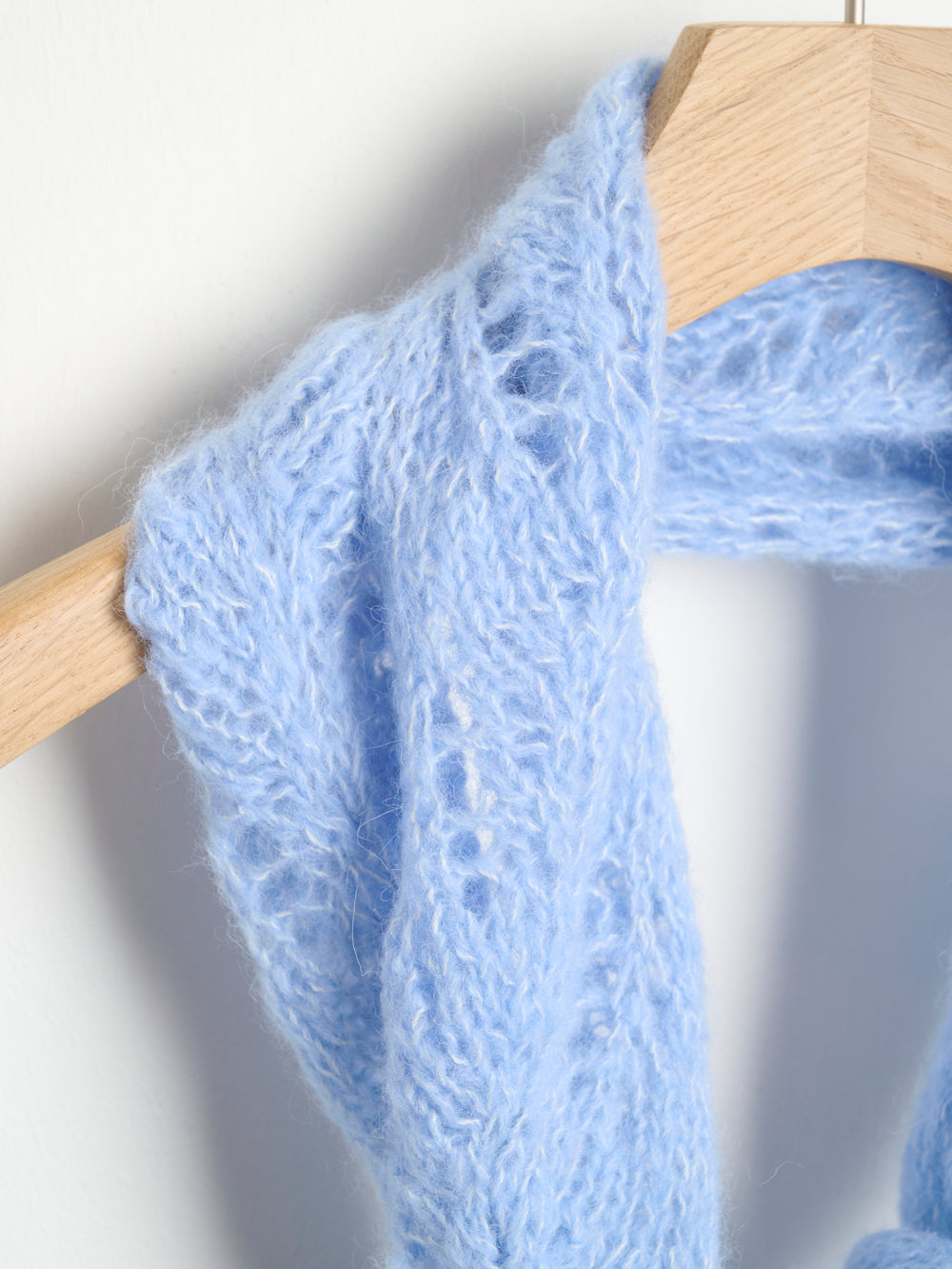 Det egner sig både som klassisk sjal over skulderne og som et let tørklæde omkring halsen.