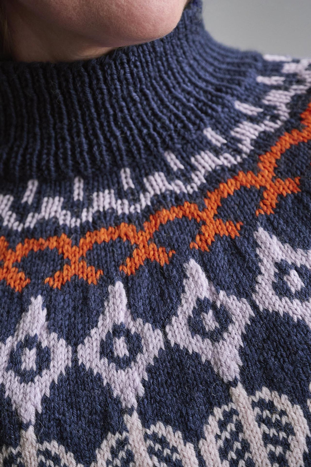 Ea sweater er en monteringsfri sweater, som strikkes oppefra og ned. Sweateren har et iøjnefaldende bærestykke, som strikkes med flere forskellige farver. Med teknikken German short rows får sweateren en bedre pasform.