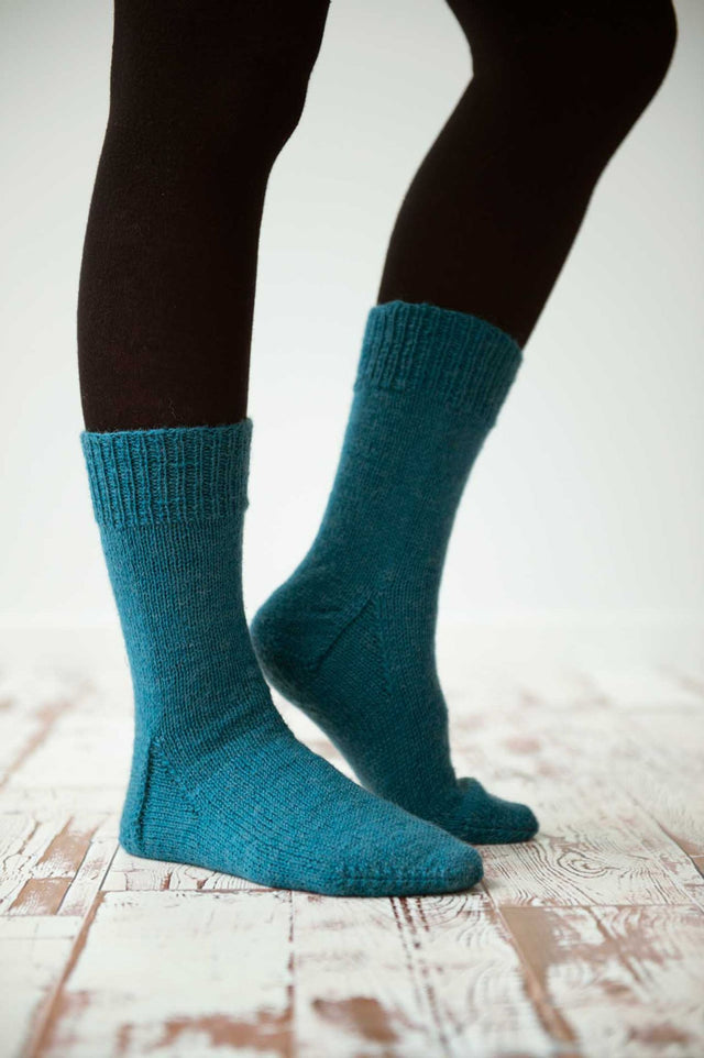 Helt klassiske og enkle men ikke desto mindre skønne strømper med kilehæl i glatstrik og ribkant foroven. Med glatstrik går det hurtigt med at få strikket skaft og sål, og opskriften hjælper dig godt igennem både hæl og tå. Tilbage står du med et par skønne og behagelige strømper.