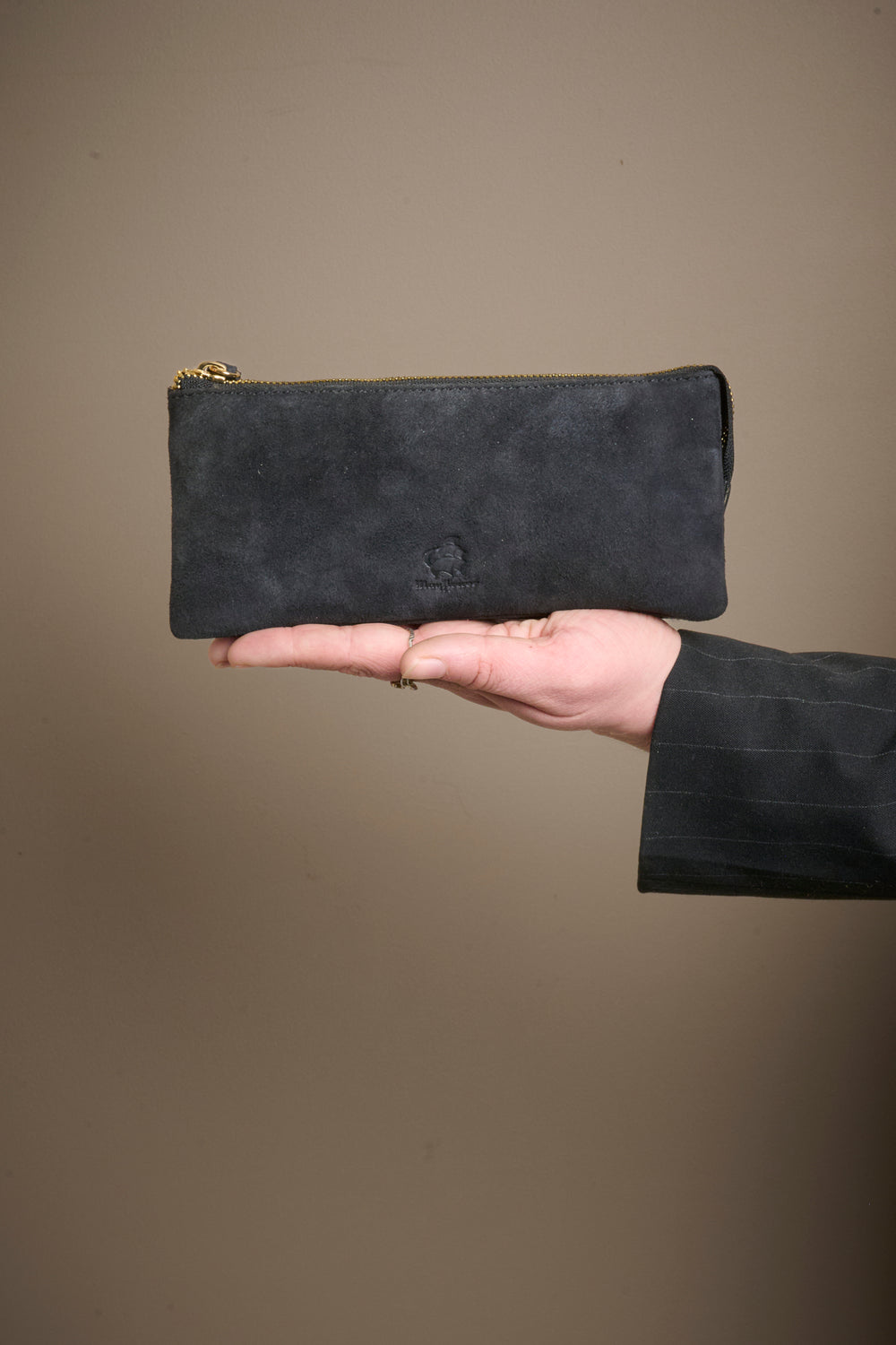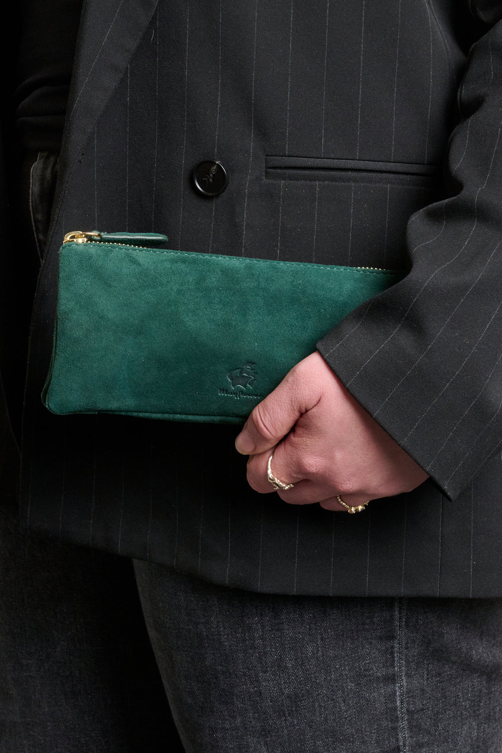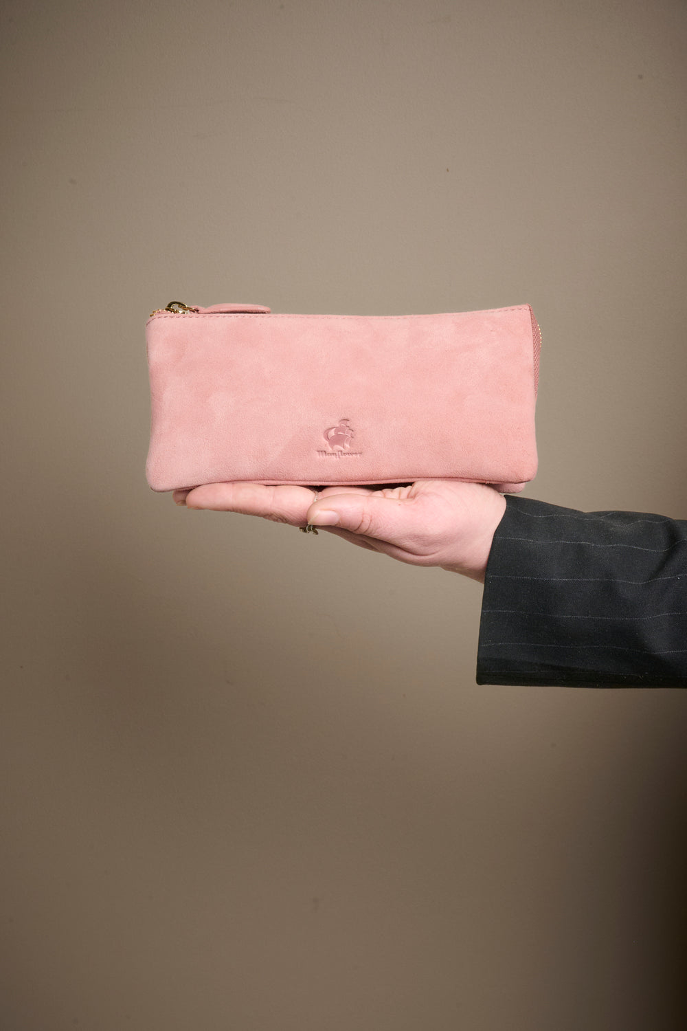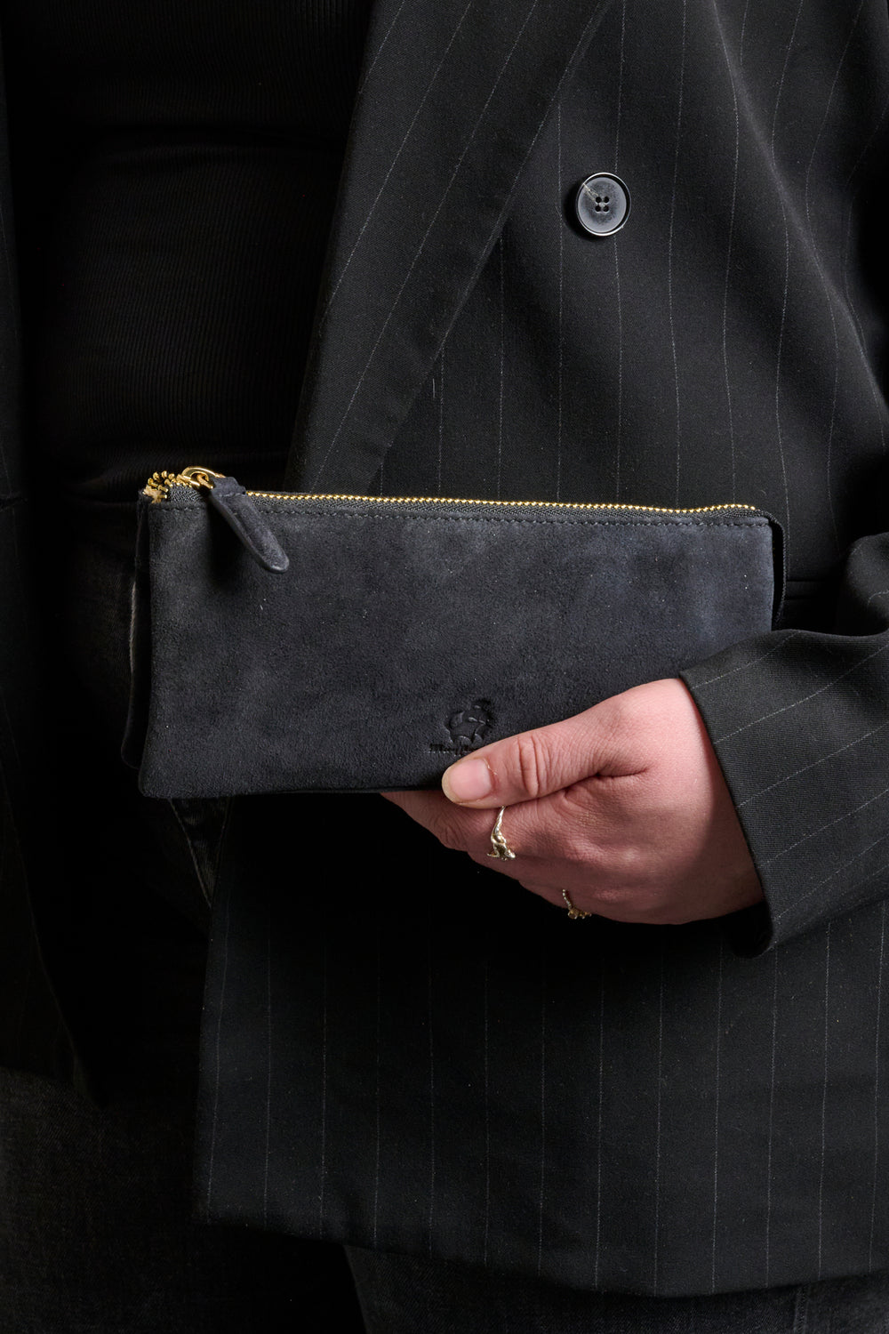 Elisa etuiet er produceret i lækkert, blødt ruskind, som er kendetegnet ved den karakteristiske opkradsede overflade og materialets smidighed. Tasken føles derfor virkelig blød og lækker at holde ved, ligesom størrelsen også gør den nem at have i hænderne.