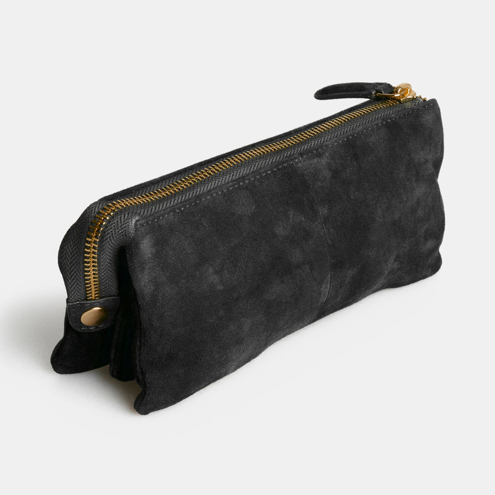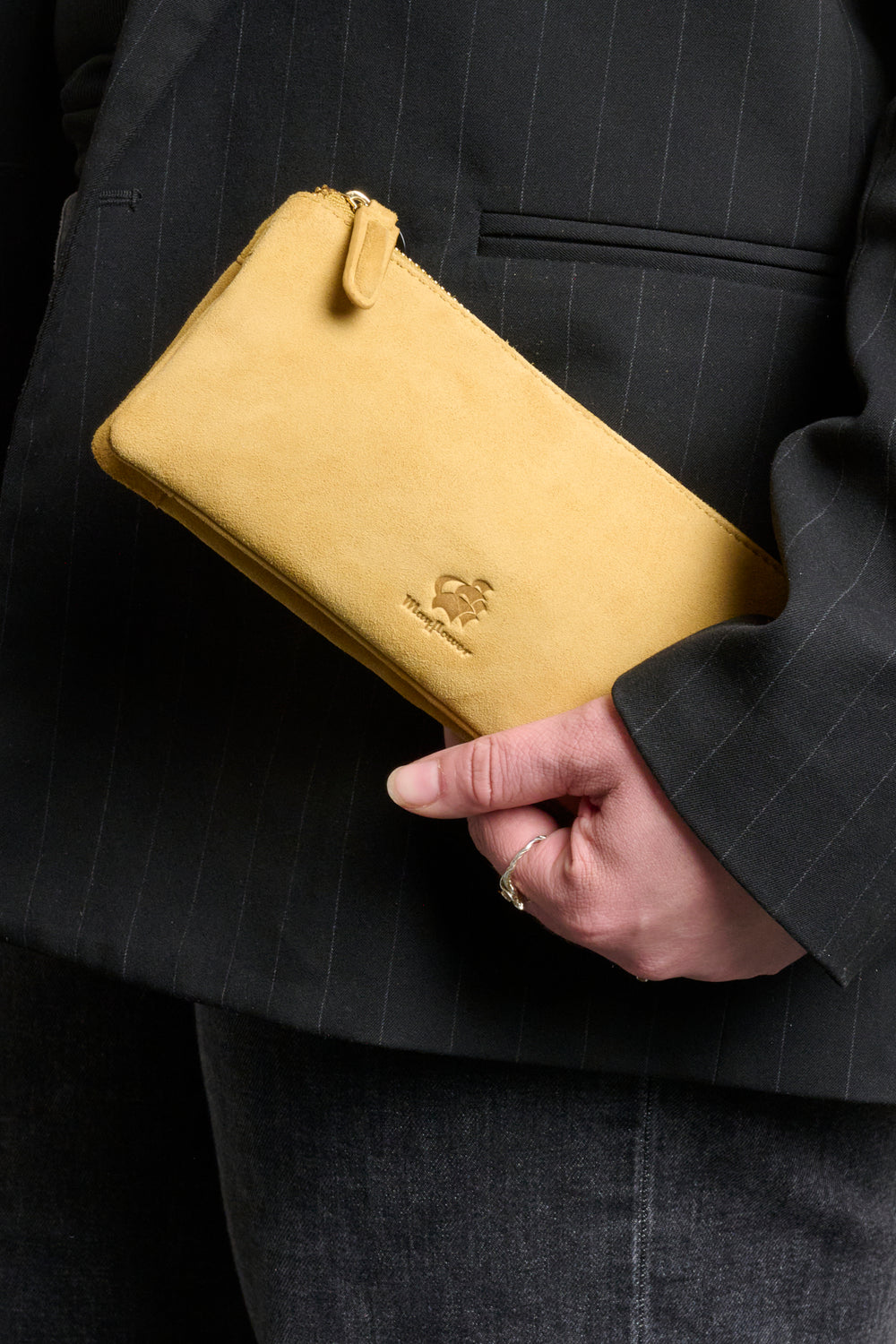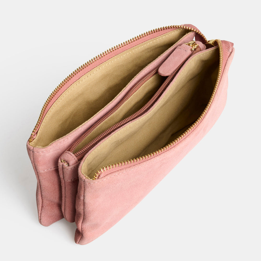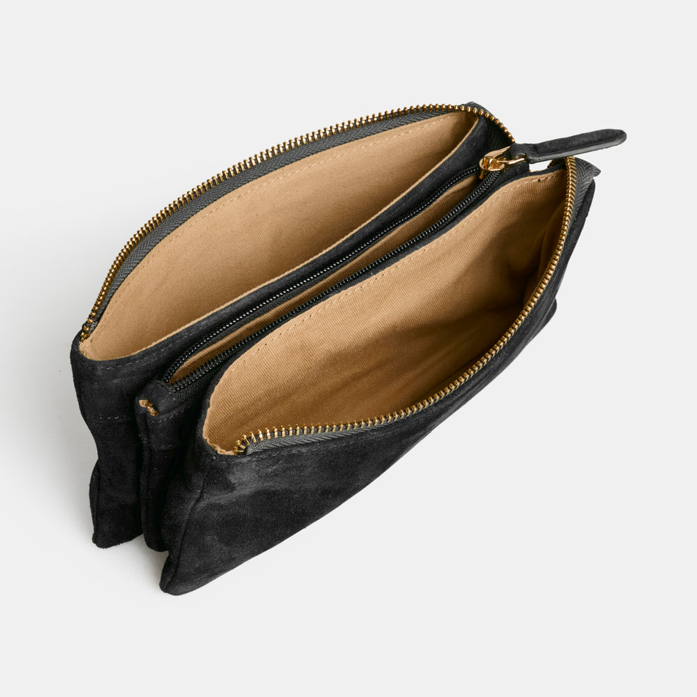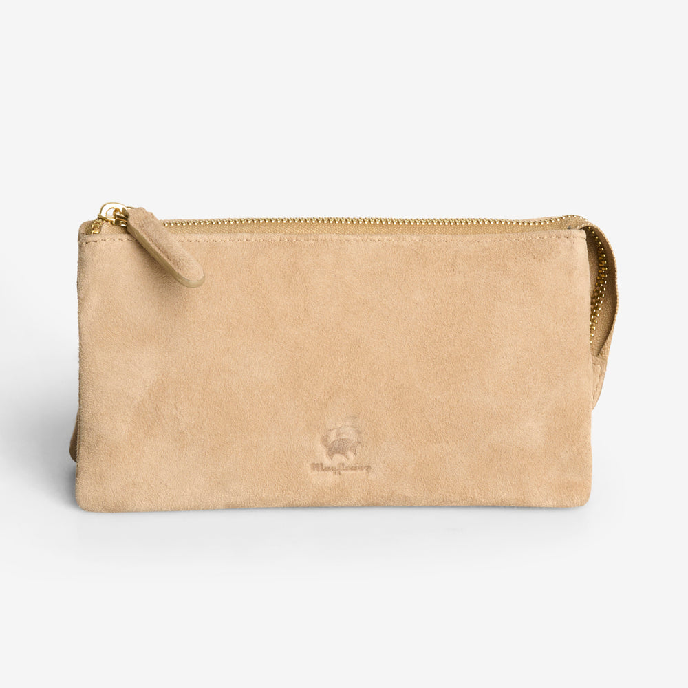 Elisa etuiet er produceret i lækkert, blødt ruskind, som er kendetegnet ved den karakteristiske opkradsede overflade og materialets smidighed. Tasken føles derfor virkelig blød og lækker at holde ved, ligesom størrelsen også gør den nem at have i hænderne.