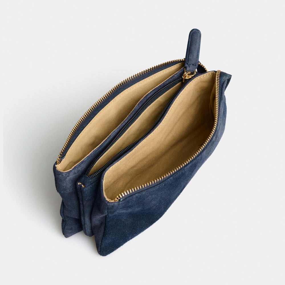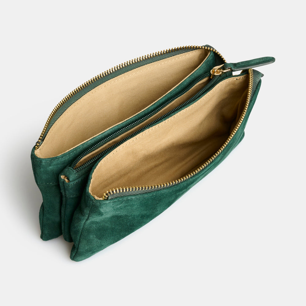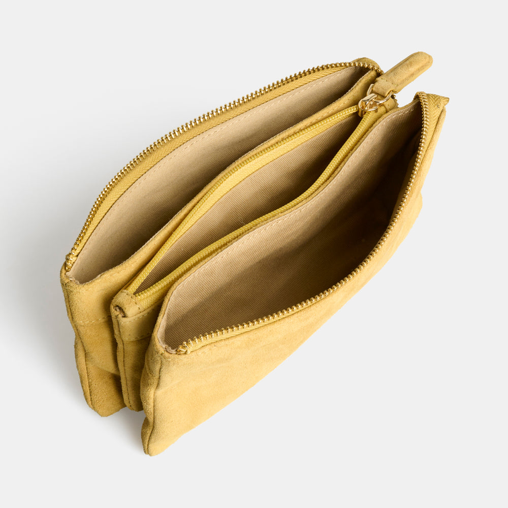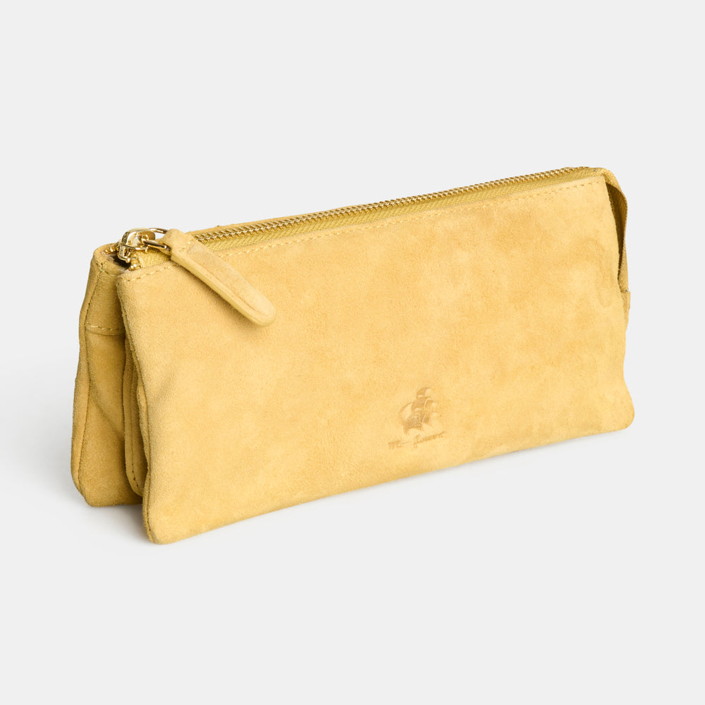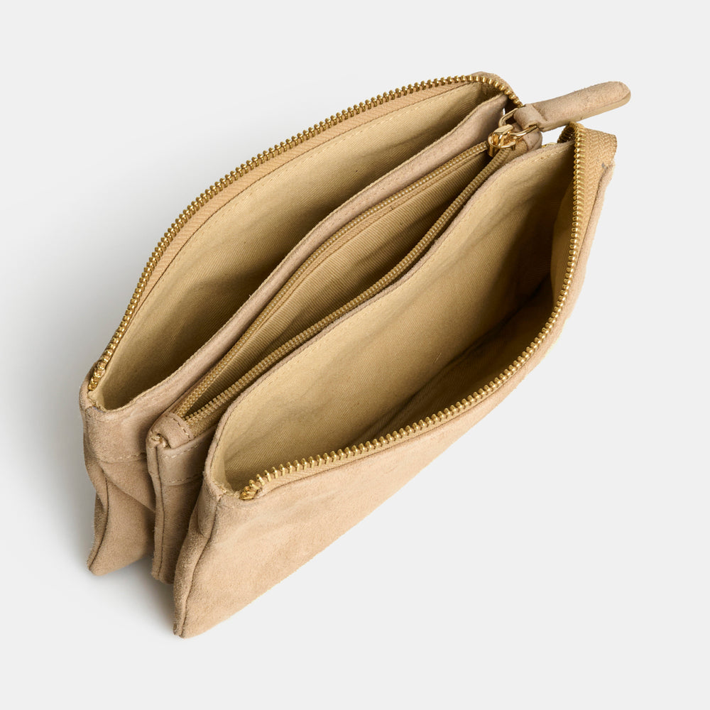 Elisa etuiet er produceret i lækkert, blødt ruskind, som er kendetegnet ved den karakteristiske opkradsede overflade og materialets smidighed. Tasken føles derfor virkelig blød og lækker at holde ved, ligesom størrelsen også gør den nem at have i hænderne.