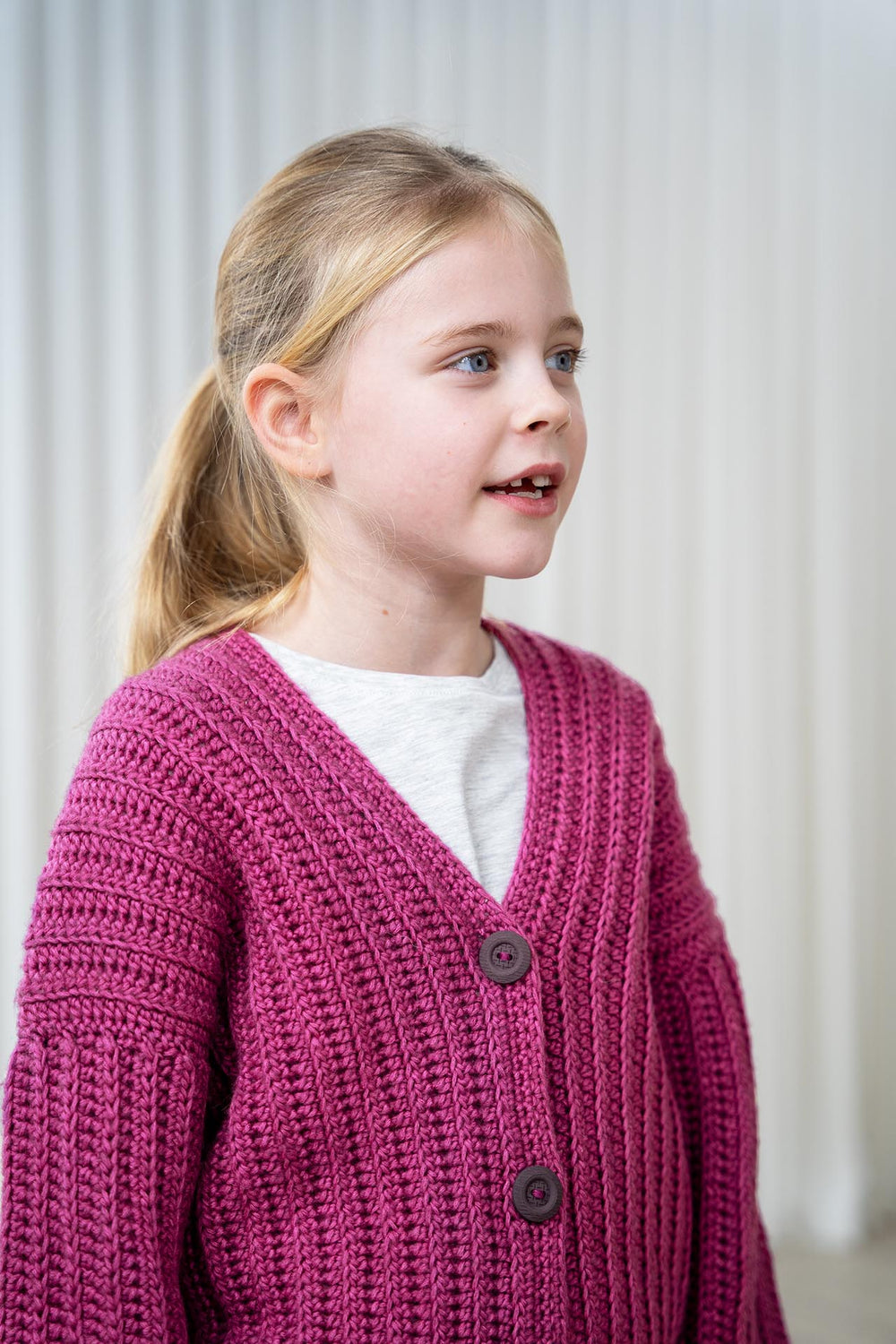 Cardiganen findes også i en voksenudgave, hvor du finder opskriften lige her.
