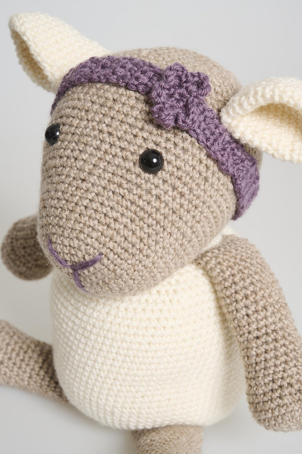 Fåre Frederikke er helt uimodståelig, og man har virkelig lyst til at kramme hende, når man samler hende op. Hun er hæklet i de bløde Easy Care Classic, som er ren uld. Fordi bamsen er hæklet i uld, bliver den ekstra blød og endnu dejligere at holde. Frederikke måler 25 cm i højden, når hun sidder ned.