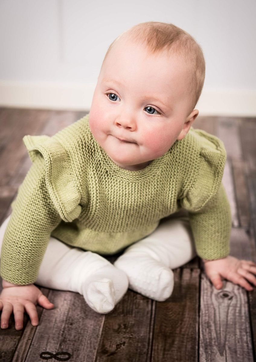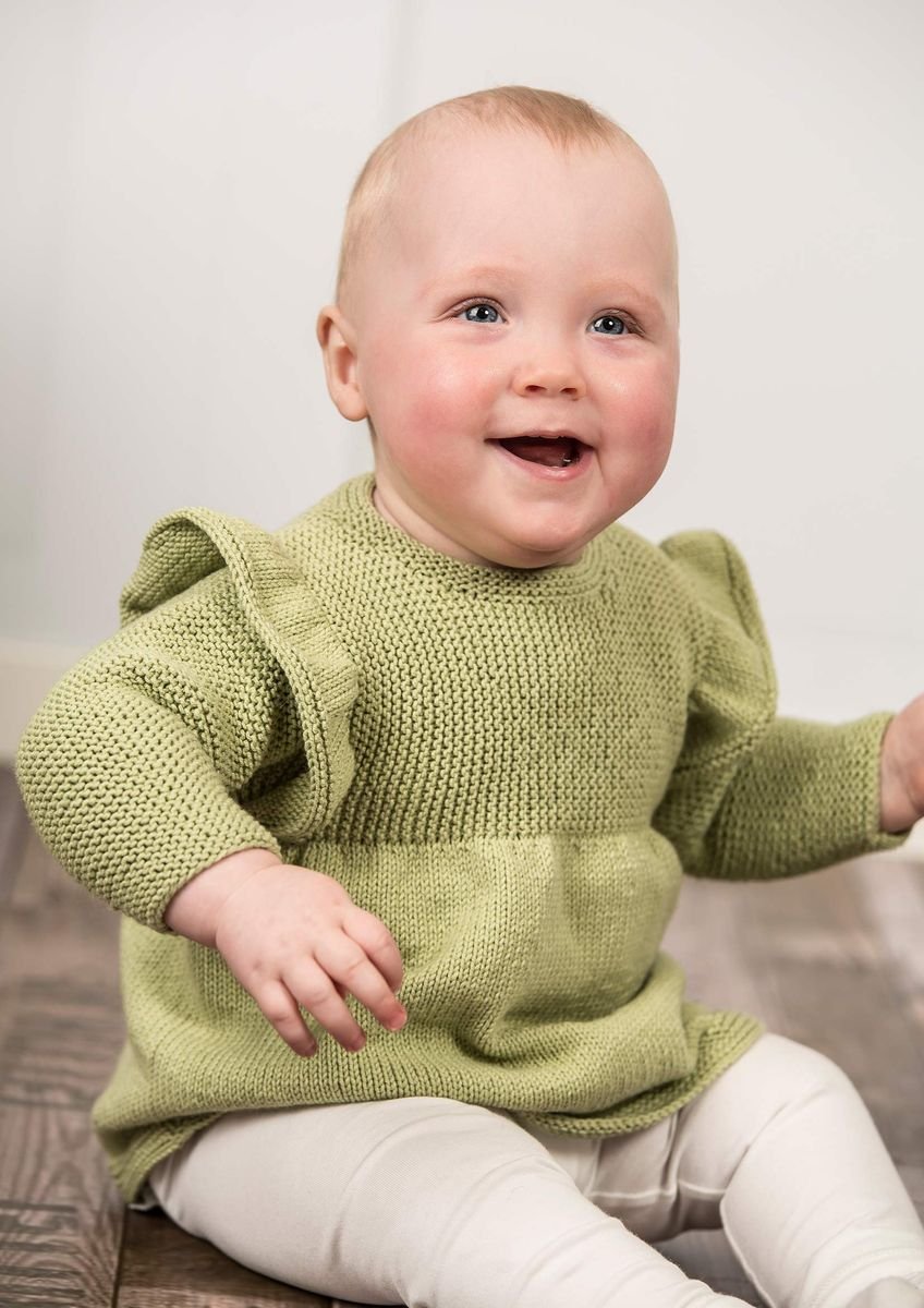 Feminin og yndig lille flæsekjole til den lille baby pige. Denne fine lille kjole til den lille prinsesse er strikket i det lækre bløde bomuldsblandings garn fra Mayflower som er det helt klare alternativ til uldgarner. Den er strikket i Mayflower Cotton 1. Mayflower Cotton 1 består af 50 % Bomuld og 50 % Acryl begge af fineste kvalitet. Mayflower Cotton 1 findes i mange smukke og moderigtige farver som du kan se her på siden. Download denne samt alle de andre opskrifter ganske gratis.