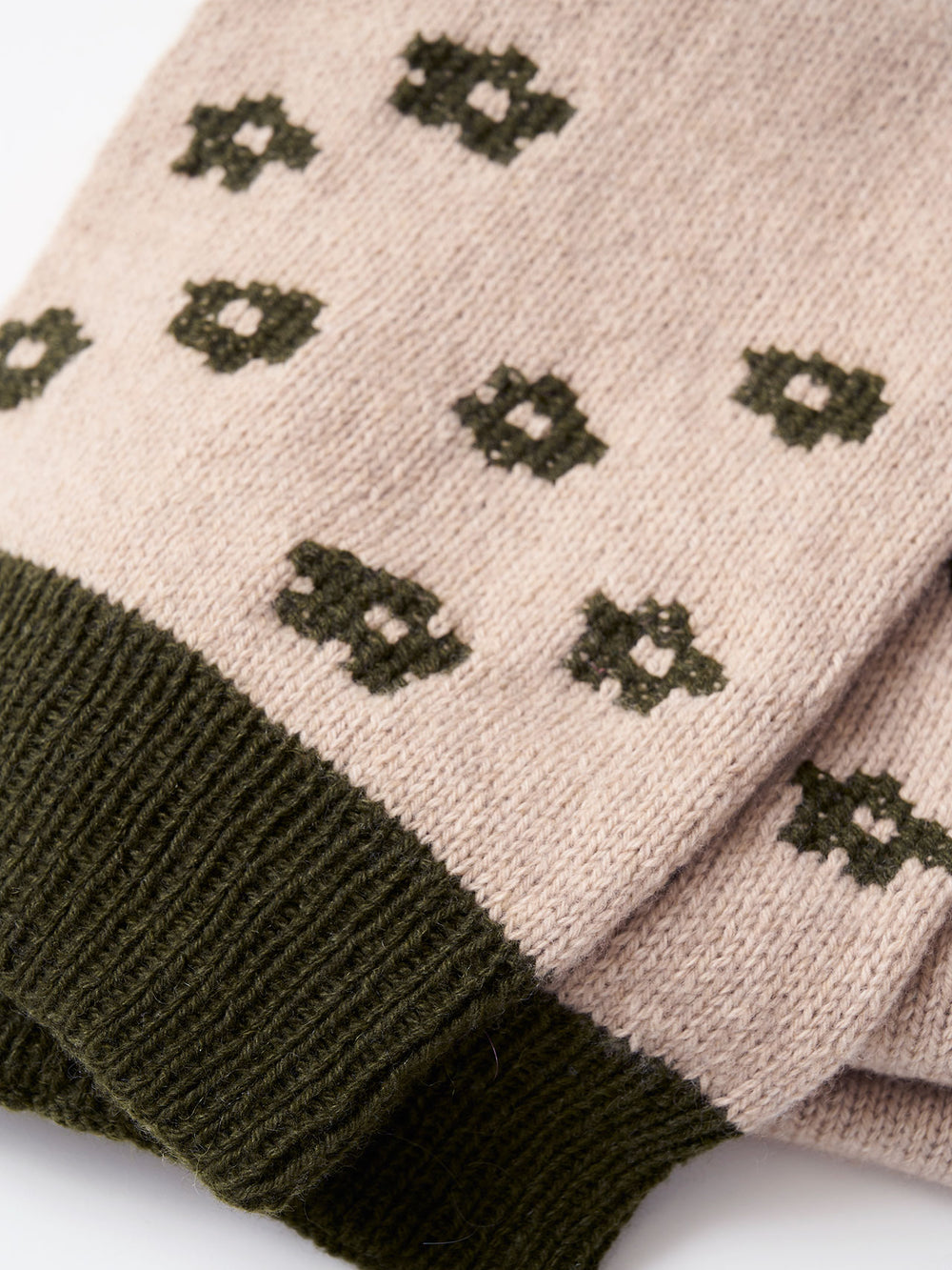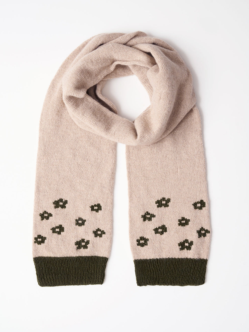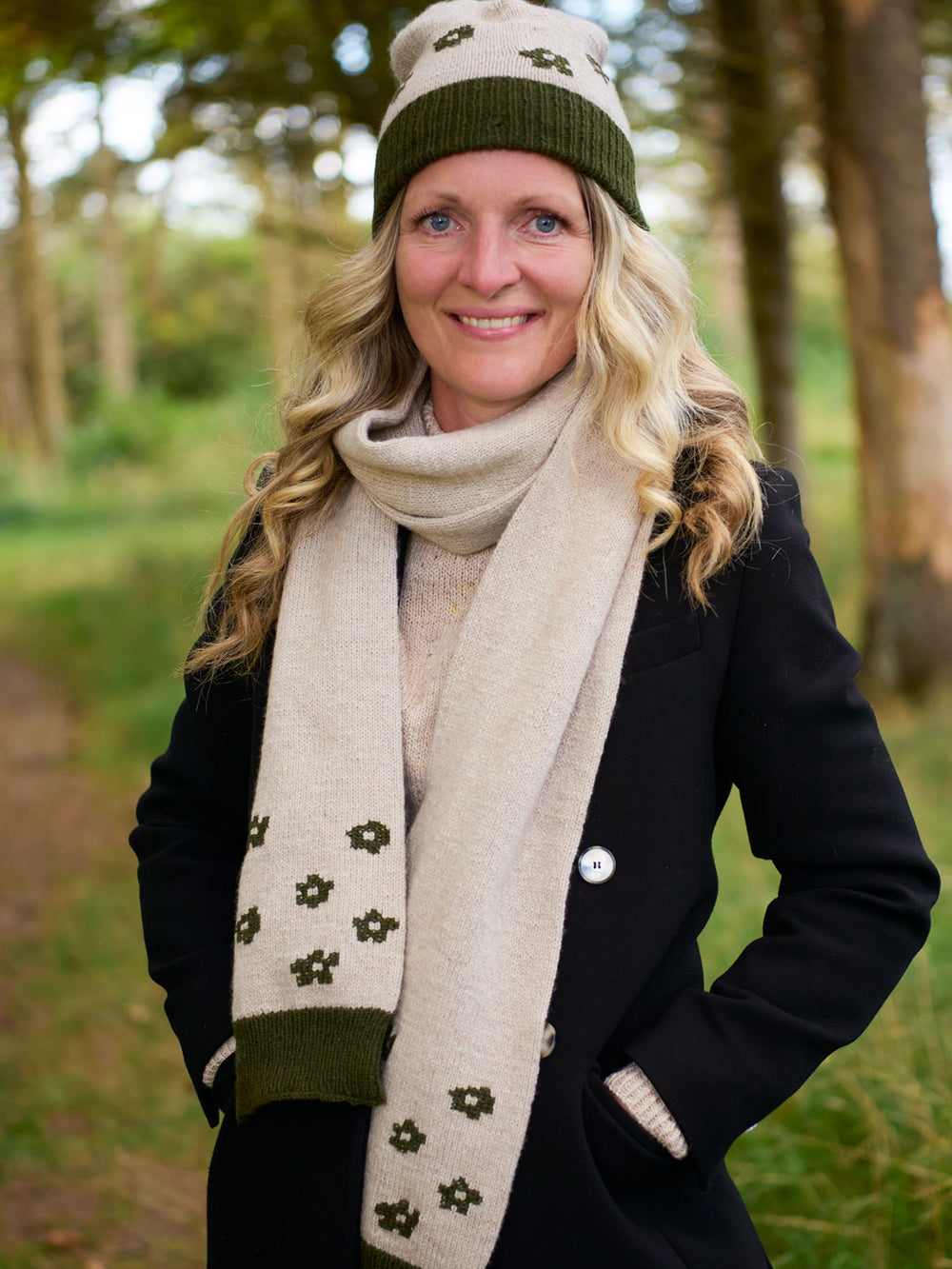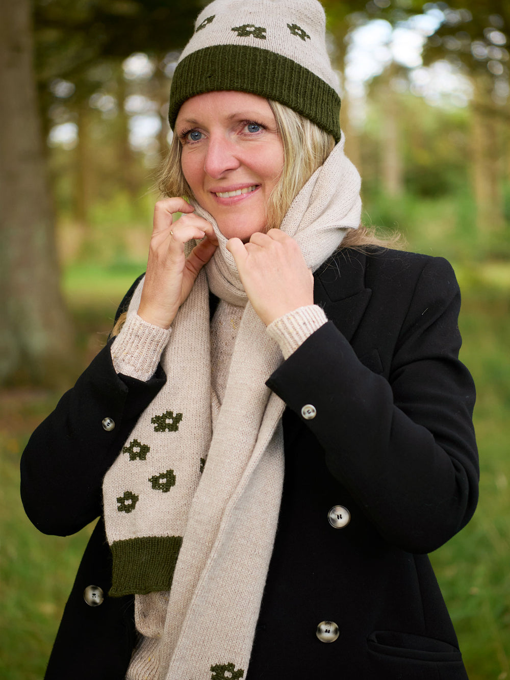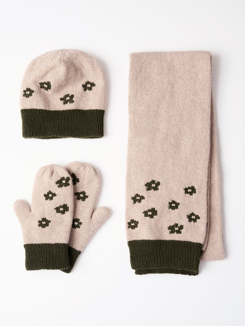 Flower tørklædet er en del af et sæt med både hue og luffer.