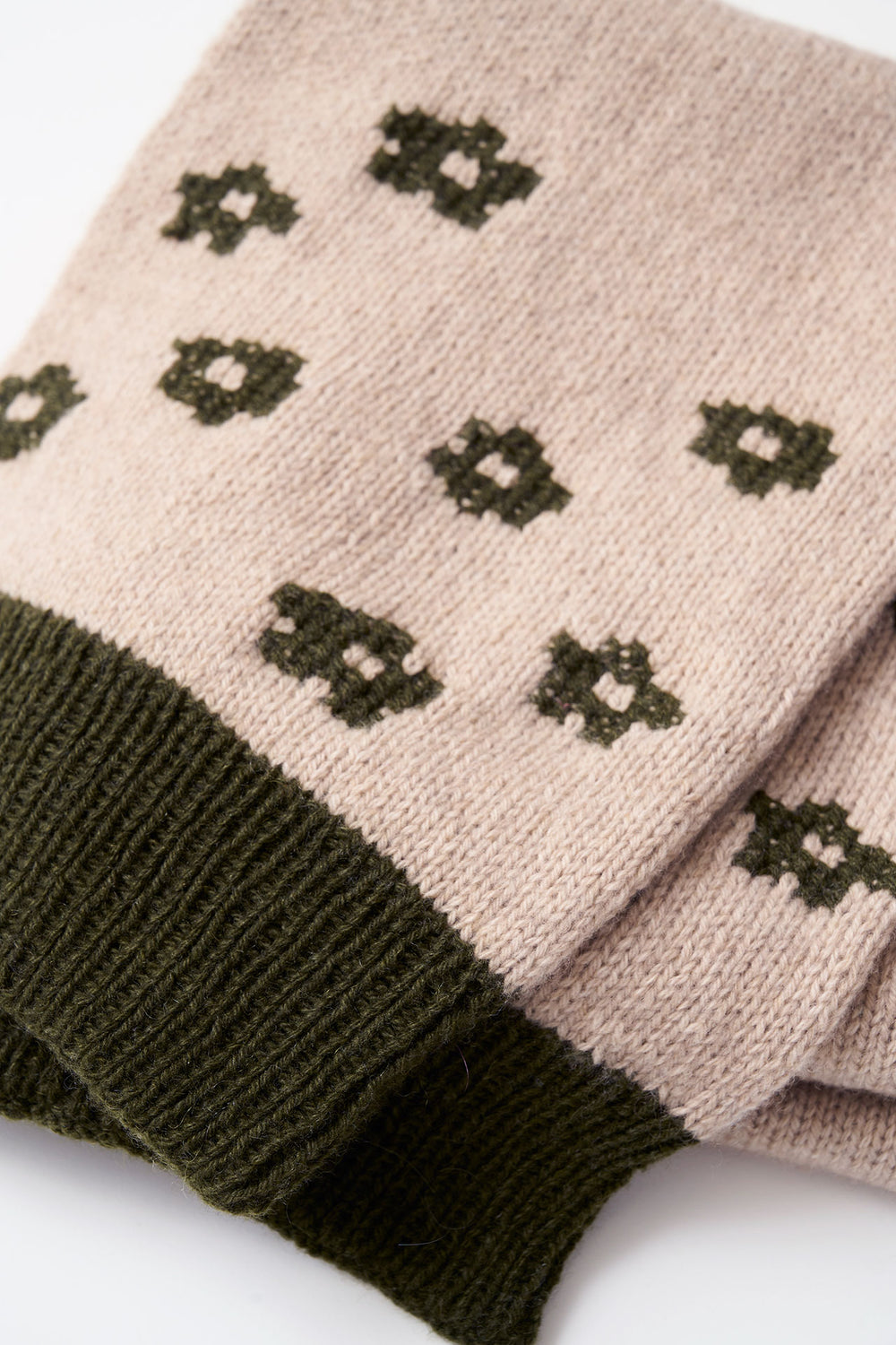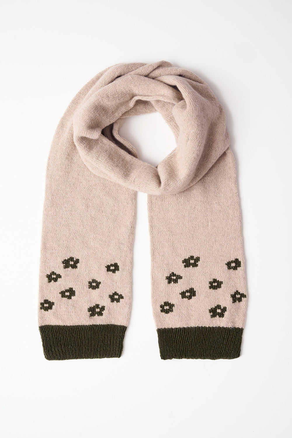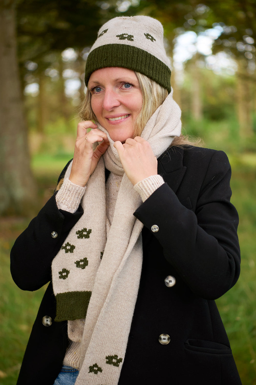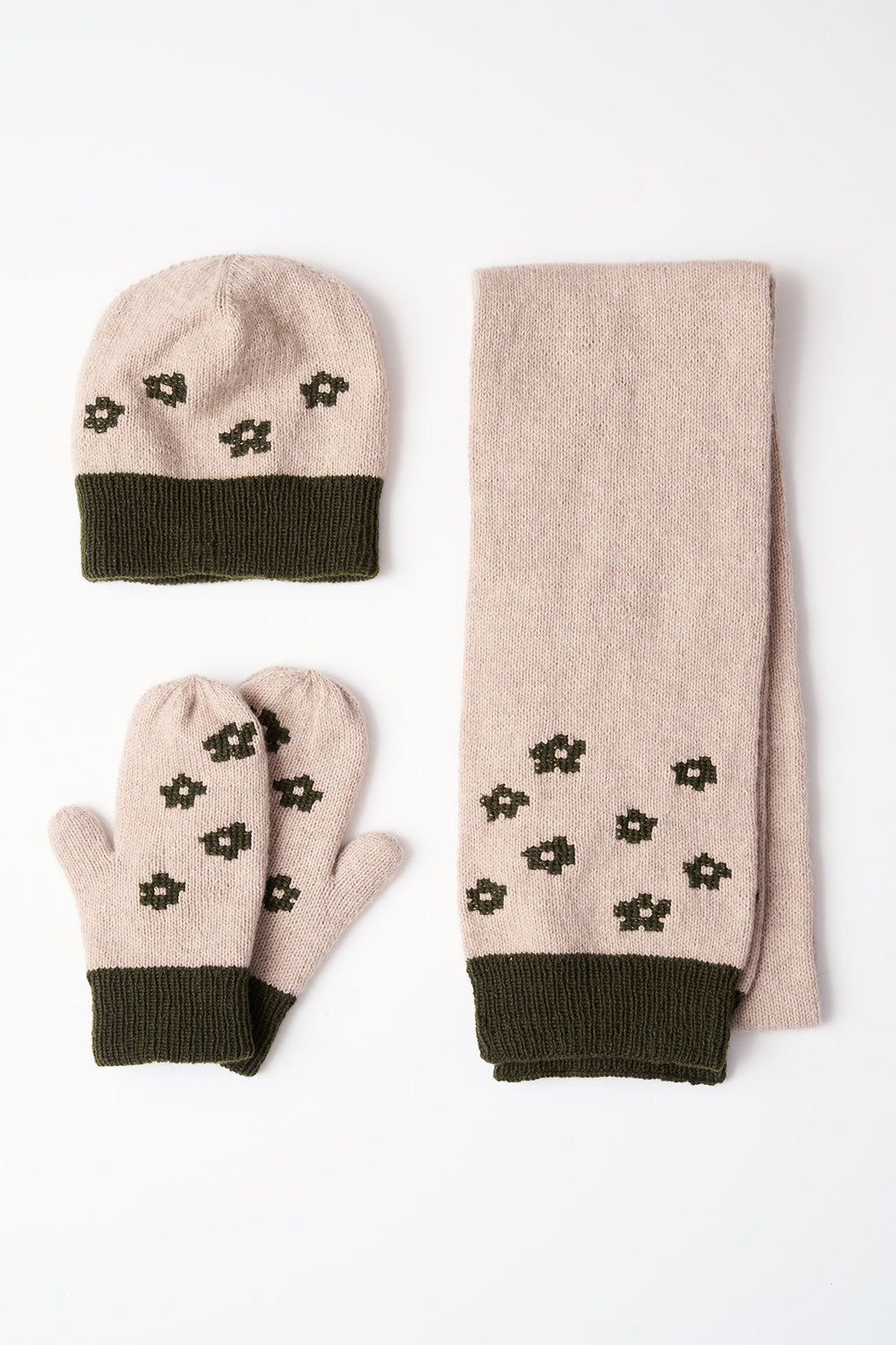 Flower tørklædet er en del af et sæt med både hue og luffer.