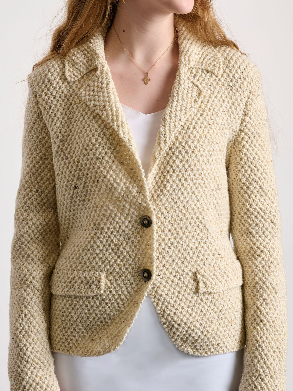 En elegant og klassisk habitjakke går aldrig af mode, og med en strikket habitjakke giver man lige moden et ekstra touch af håndværk. Denne habitjakke er strikket og formet, som er den skræddersyet. Derfor er der en del ind- og udtagninger undervejs.