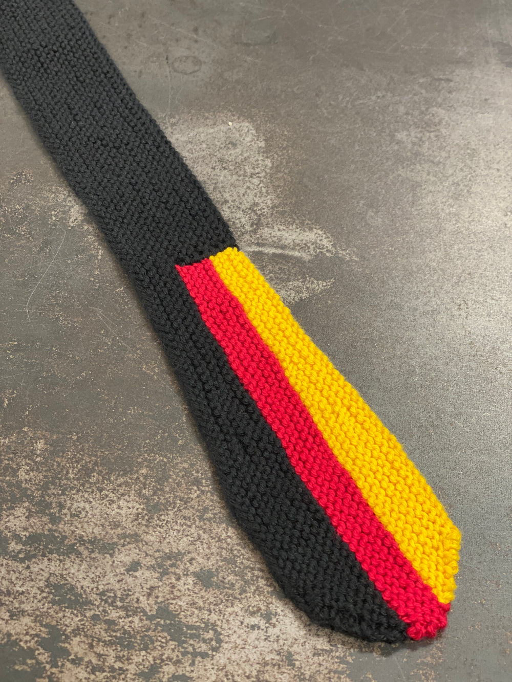 Dette slips er et super interessant element i en festlig garderobe, som er perfekt til fødselsdag, jul eller sportslige arrangementer. Det er strikket af retmasker, så det bliver fast med flotte kanter. Slipset er strikket på langs og har vendepinde, hvor du skal bruge teknikken 'German Short Row'. Det er vigtigt, at både opslagning, strikning og aflukning er strikket stramt.